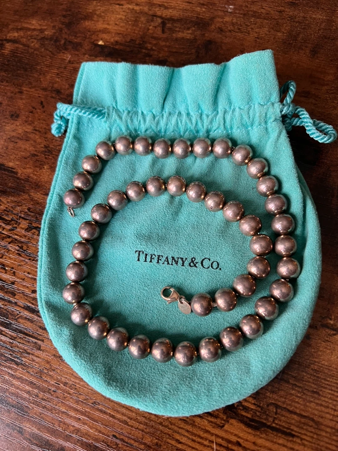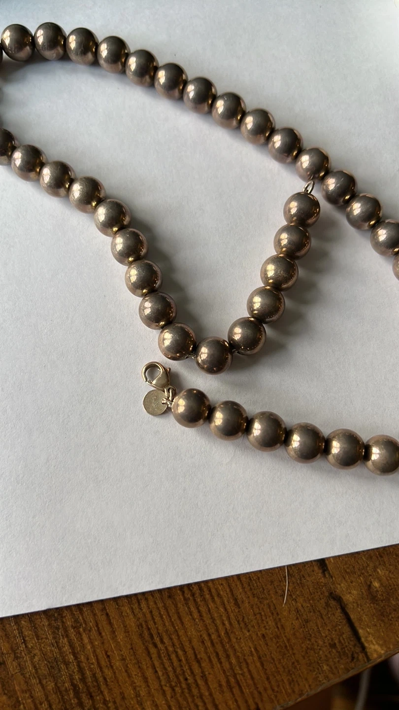Selling a Tiffany & Co. bead necklace. It is made of sterling silver and has a lobster claw clasp. Comes with the original Tiffany & Co. pouch!