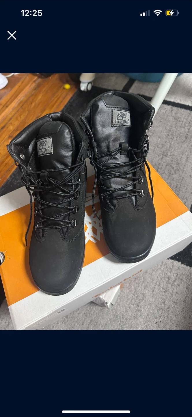 10These are a pair of Timberland boots in black. Worn once. They come with the original box. Great for winter weather wear!