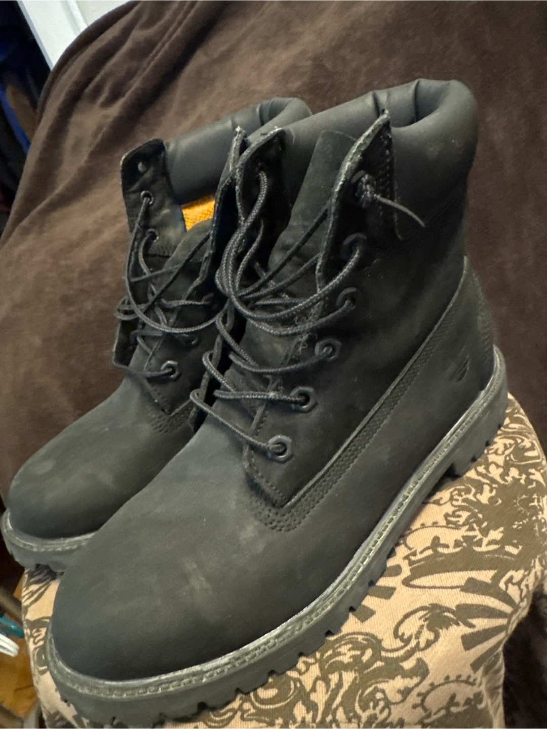 Selling a pair of Timberland boots in black. They show some signs of wear but are still in good condition and ready for a new home! Great for everyday wear or outdoor activities
