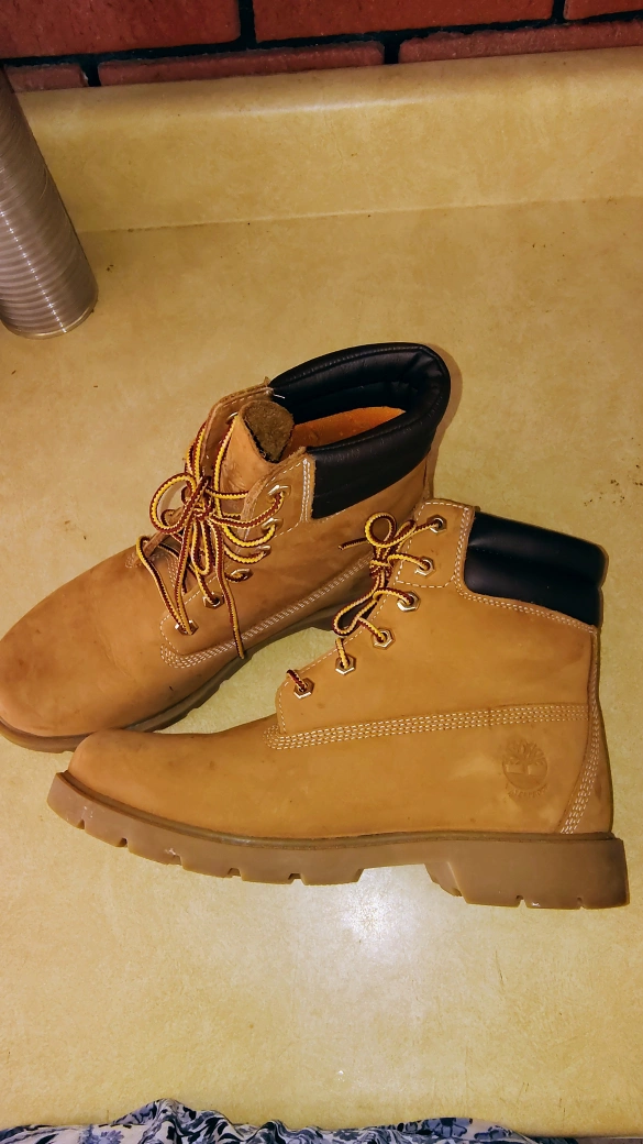 Selling a pair of Timberland boots in women's size 8.5. These are a classic style and great for all sorts of weather. They show some signs of wear but still have lots of life left!