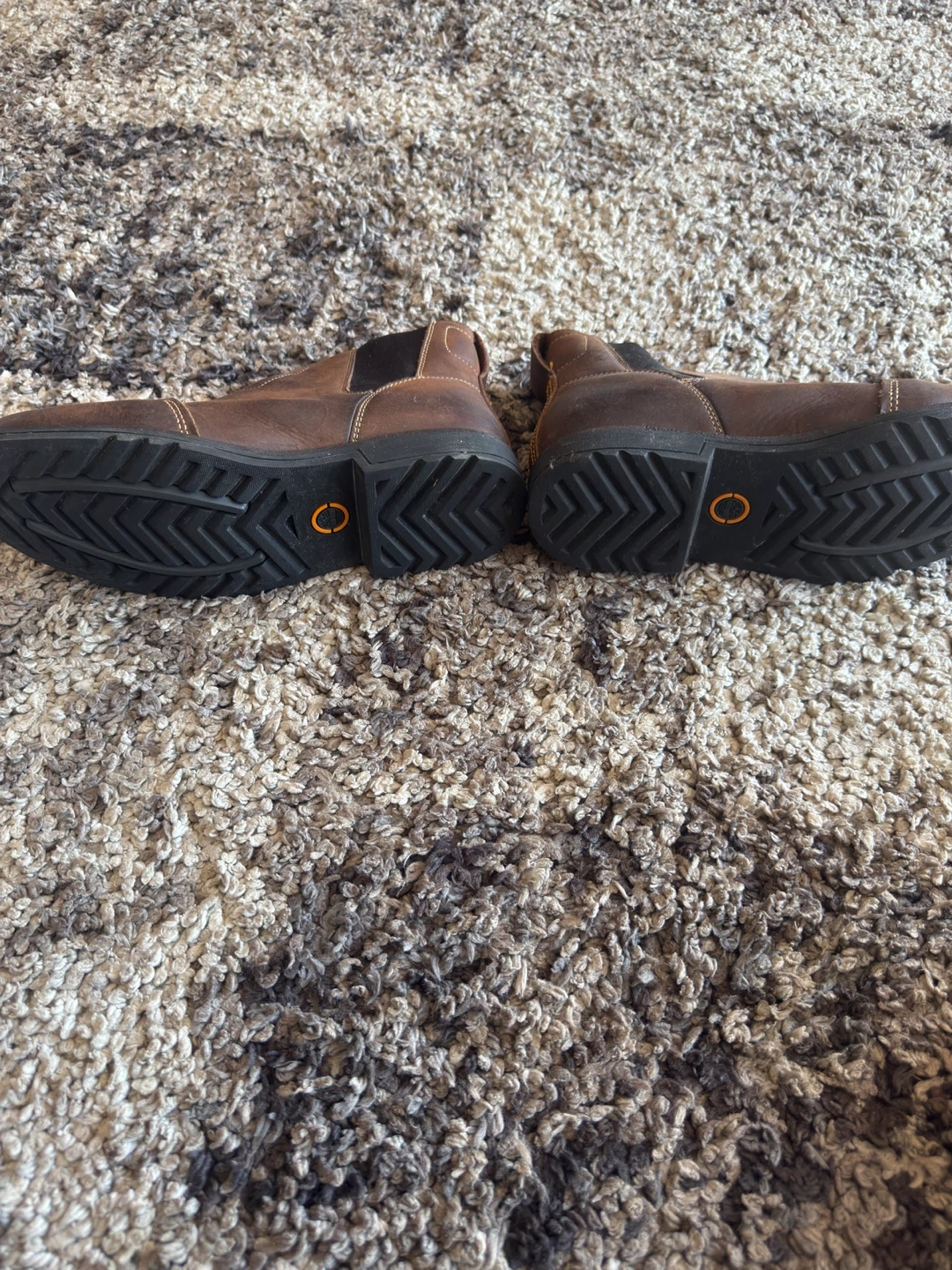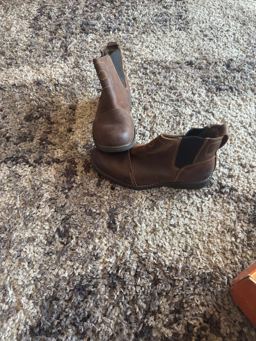 Selling a pair of Timberland Chelsea boots in brown leather! They're a size 8.5M and have a classic, stylish look. Perfect for everyday wear or dressing up a bit. They show some signs of use but are still in good condition and ready for a new home