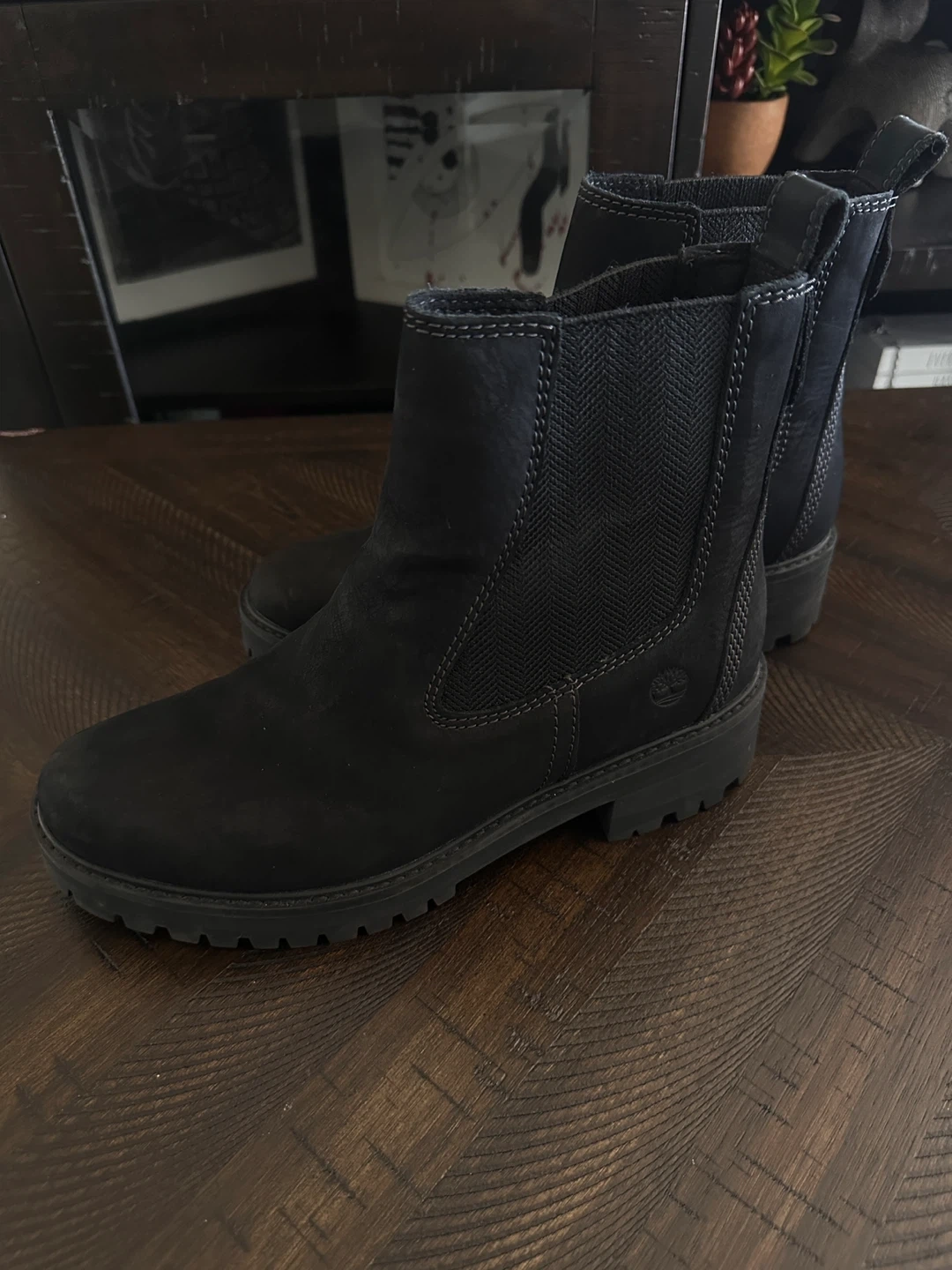 Selling a pair of Timberland Chelsea boots in black. These are a women's size 8.5 US. They're in good condition and ready for a new home!