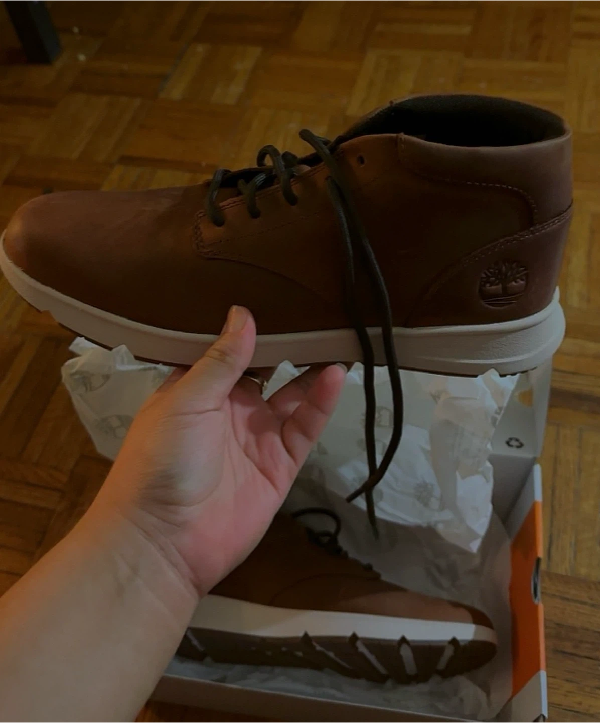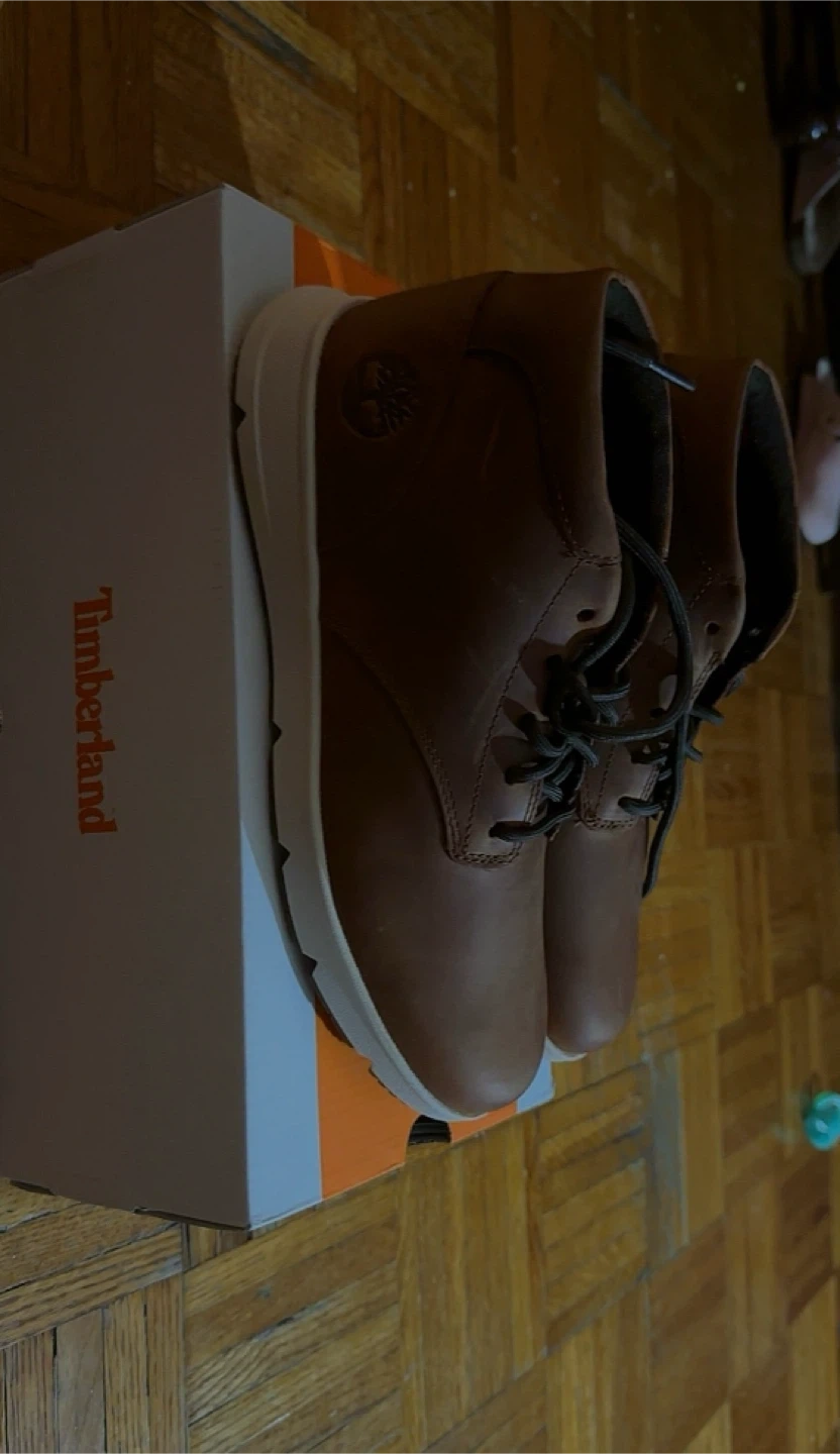 Selling a pair of Timberland Chukka boots in brown, size 7.5 US. They are in great condition and come with the original box. Perfect for everyday wear!