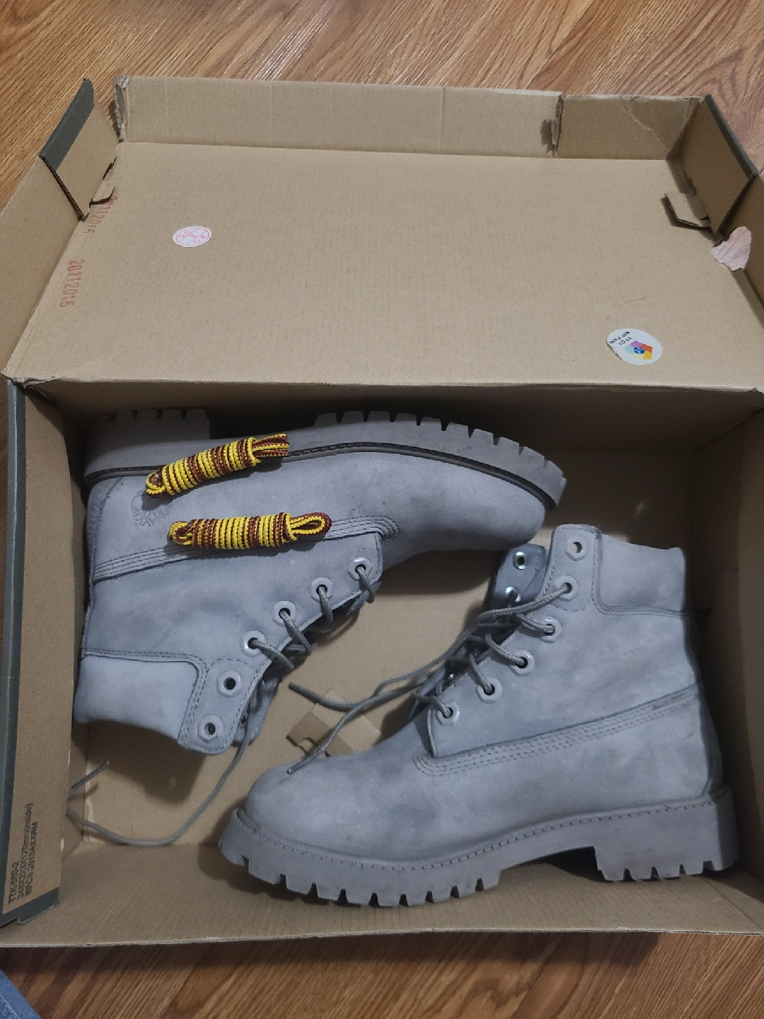 15Selling a pair of Timberland Junior 6-Inch Premium Waterproof Boots in a stylish gray color! These boots are size 3.5 and come with the original box. They're perfect for keeping your little one's feet dry and comfortable in any weather. Grab them while they're still available!