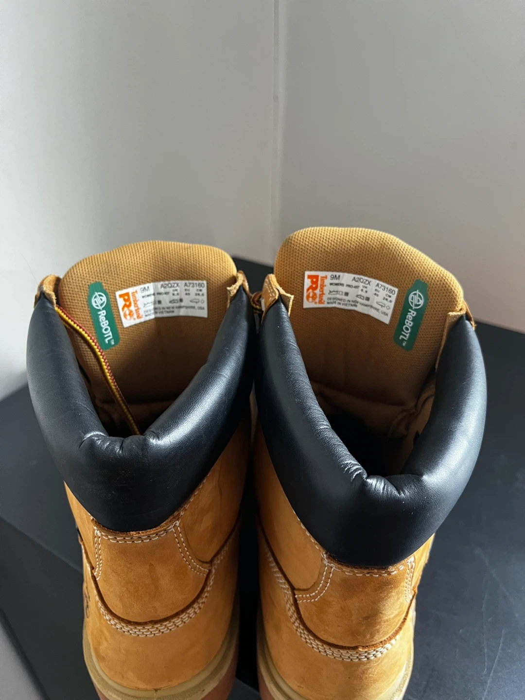 Selling a pair of Timberland PRO soft toe boots in size 9M. They are waterproof and ready for work!