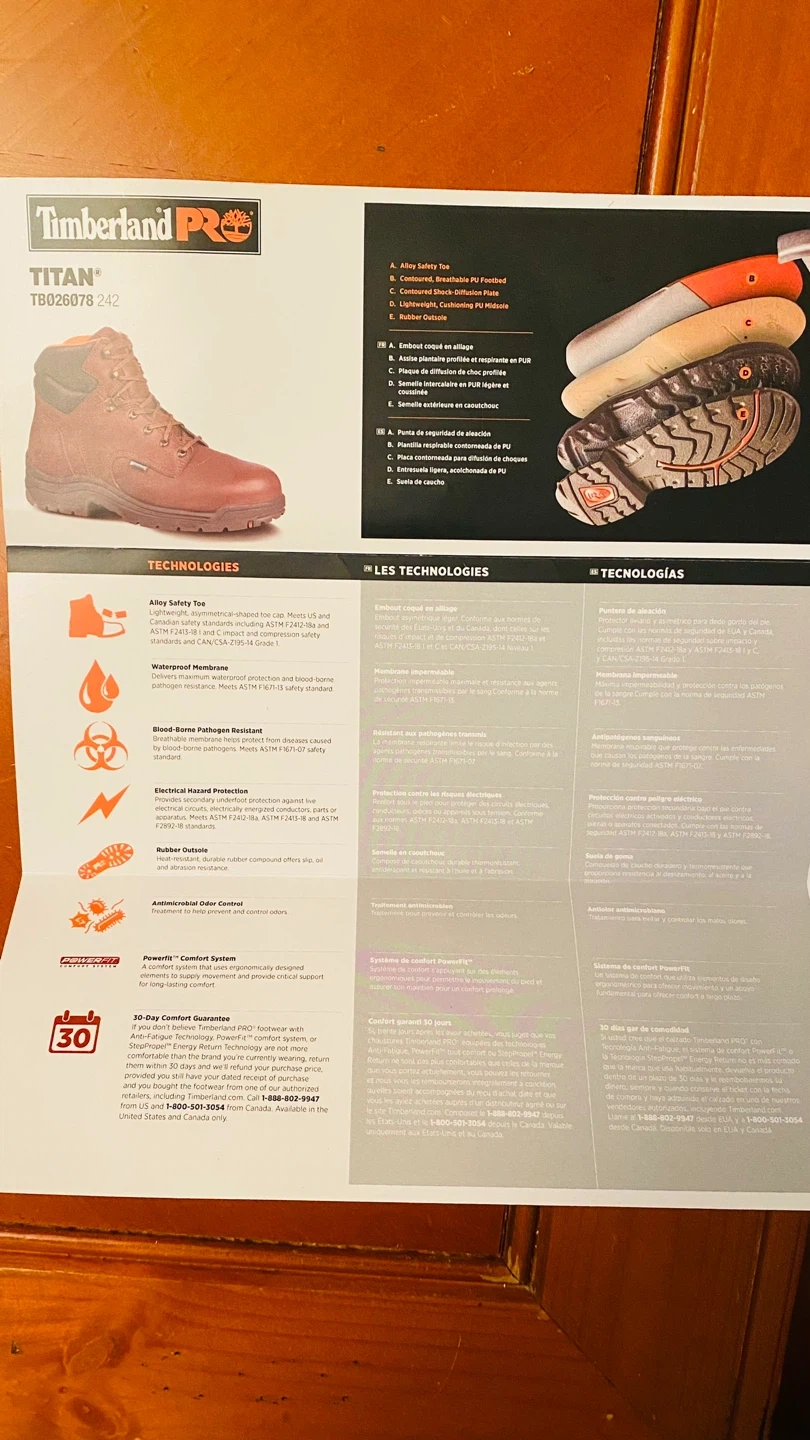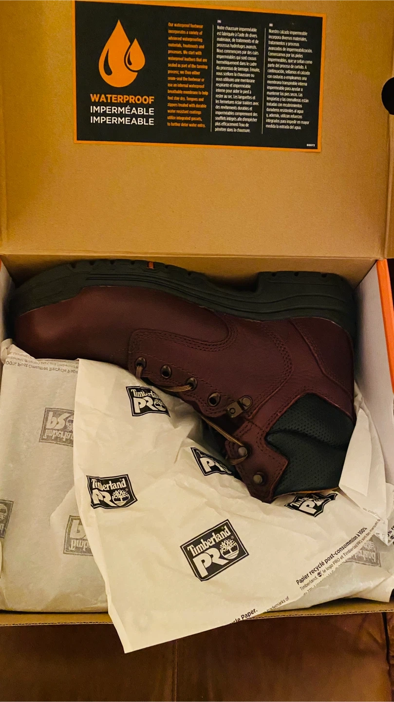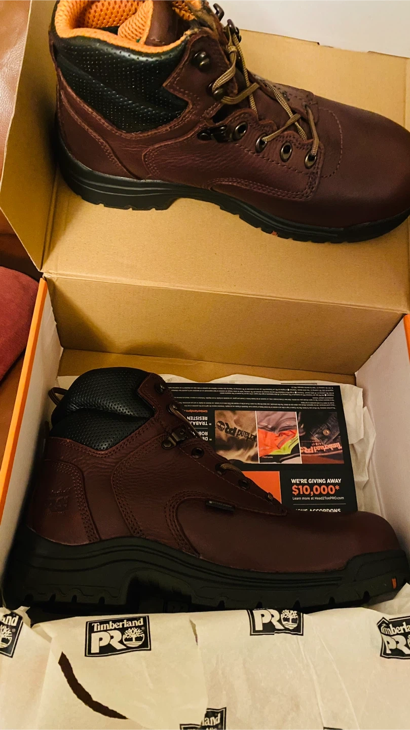 51Get ready to work with these Timberland PRO Titan Alloy Safety Toe Waterproof Work Boots! They come in a US size 9.5. The boots are waterproof and feature an alloy safety toe for protection. They are designed with comfort technology for all-day support. The box is included!