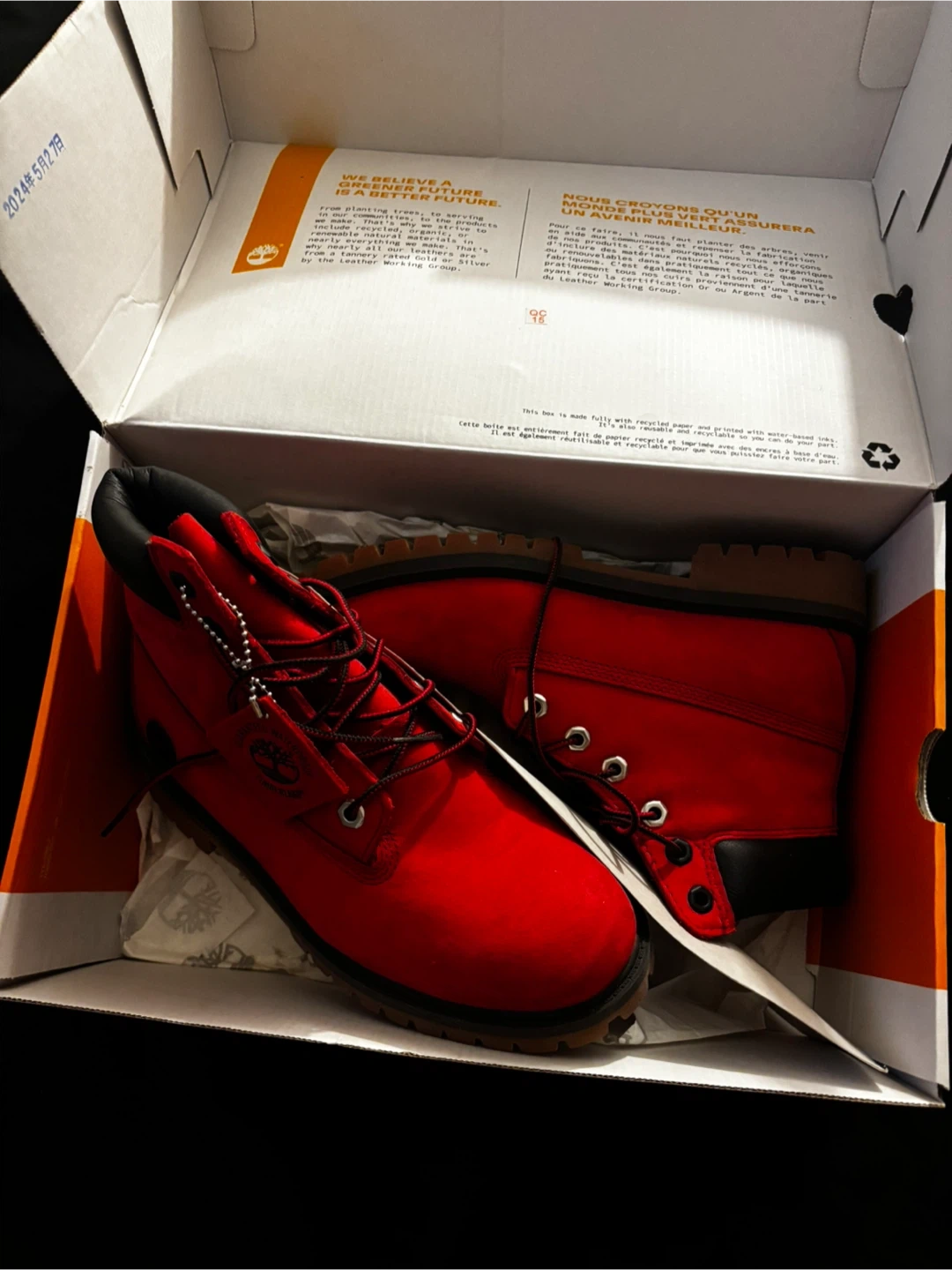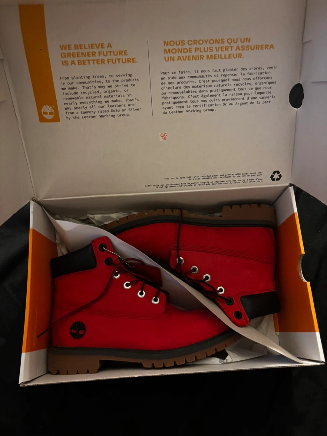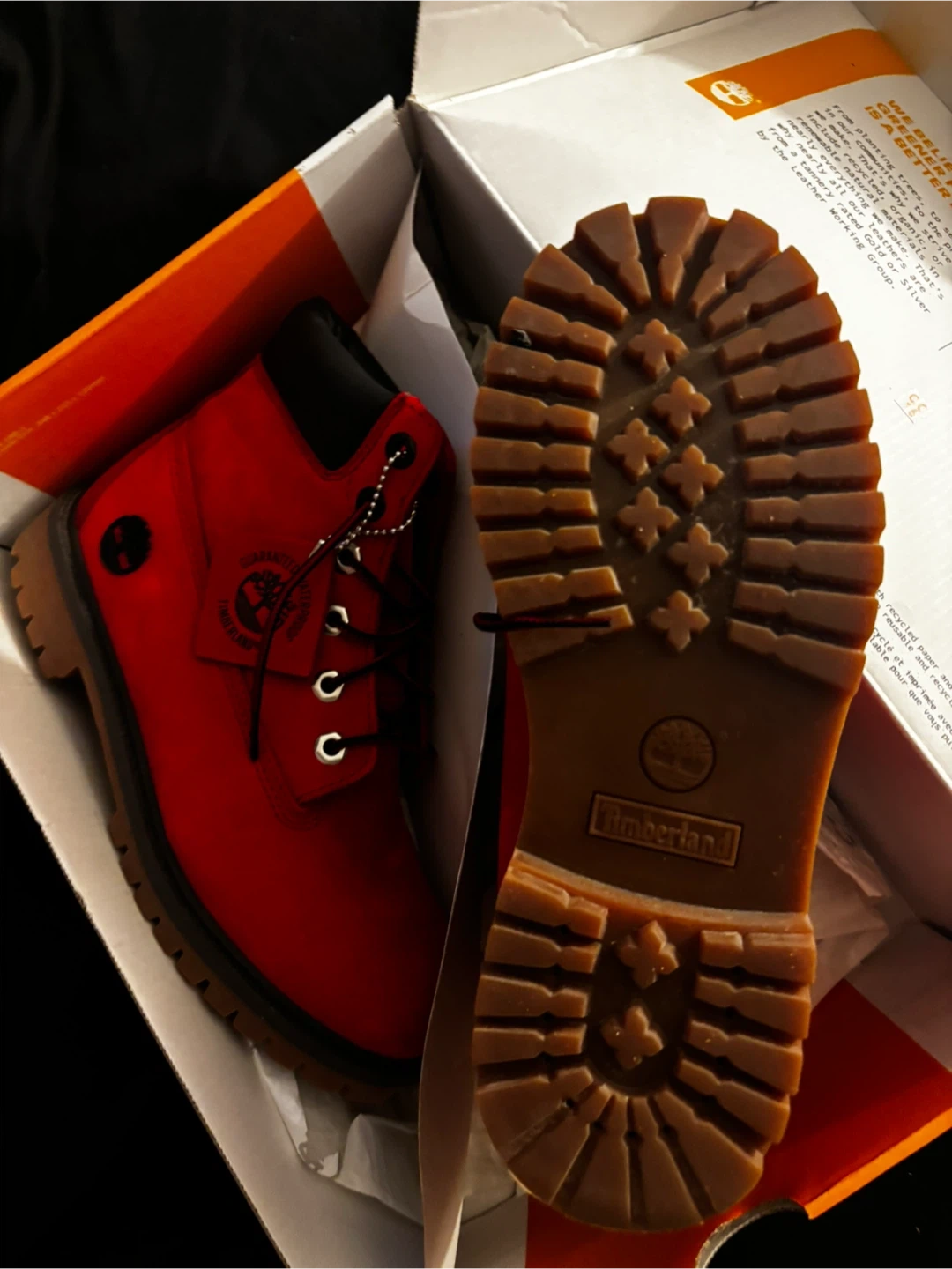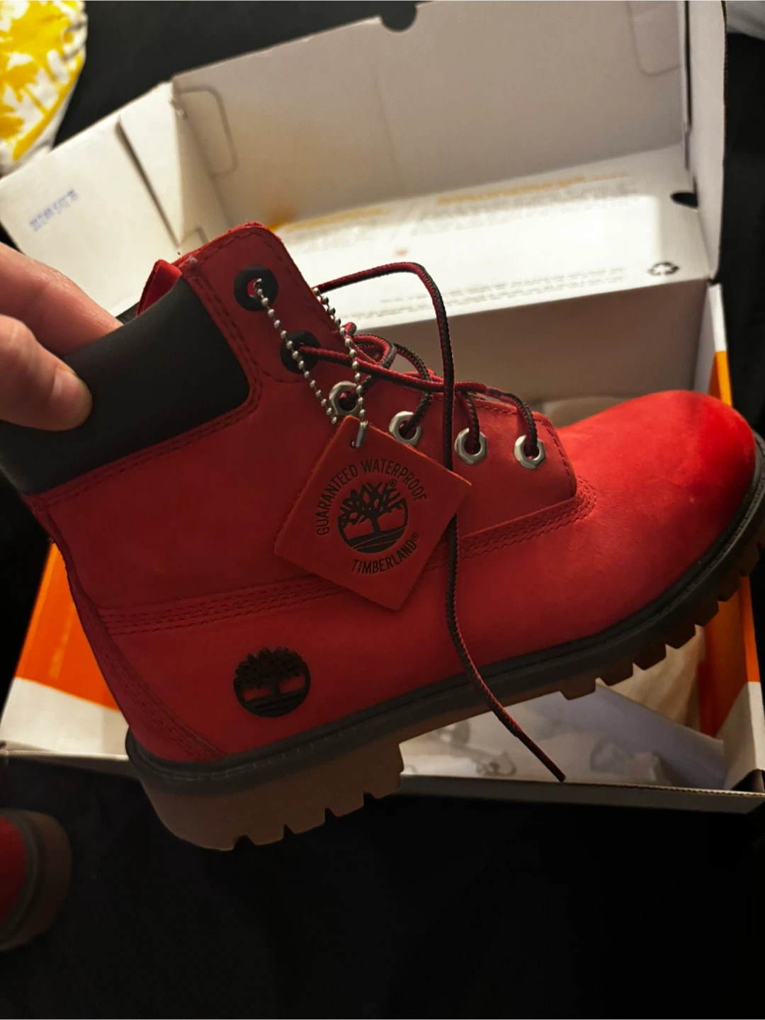 Size 5 juniors Selling a pair of Timberland waterproof boots in red! They are in great condition. These boots are perfect for keeping your feet dry and stylish.