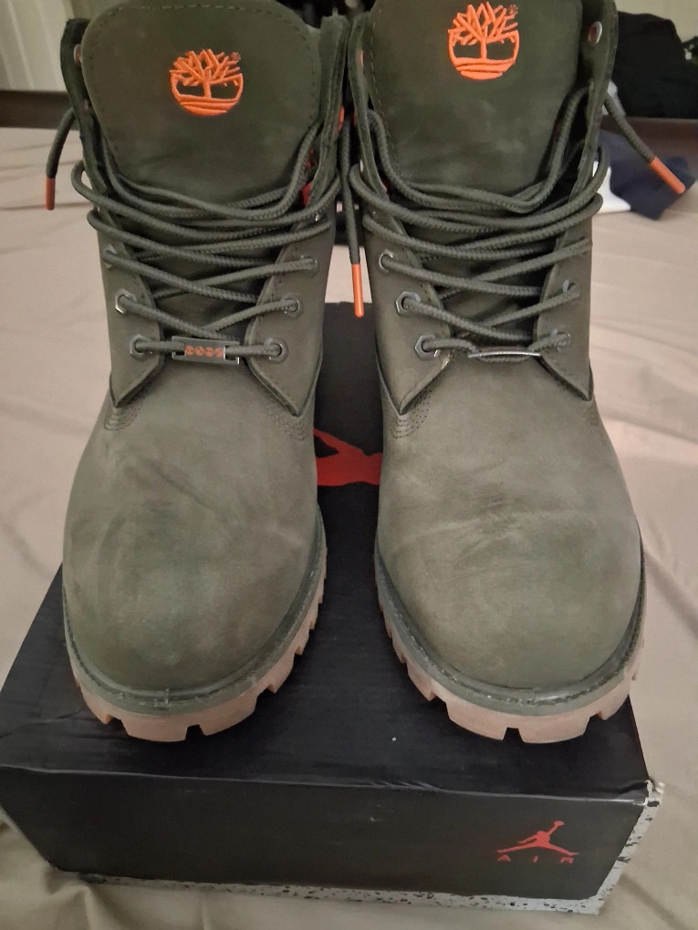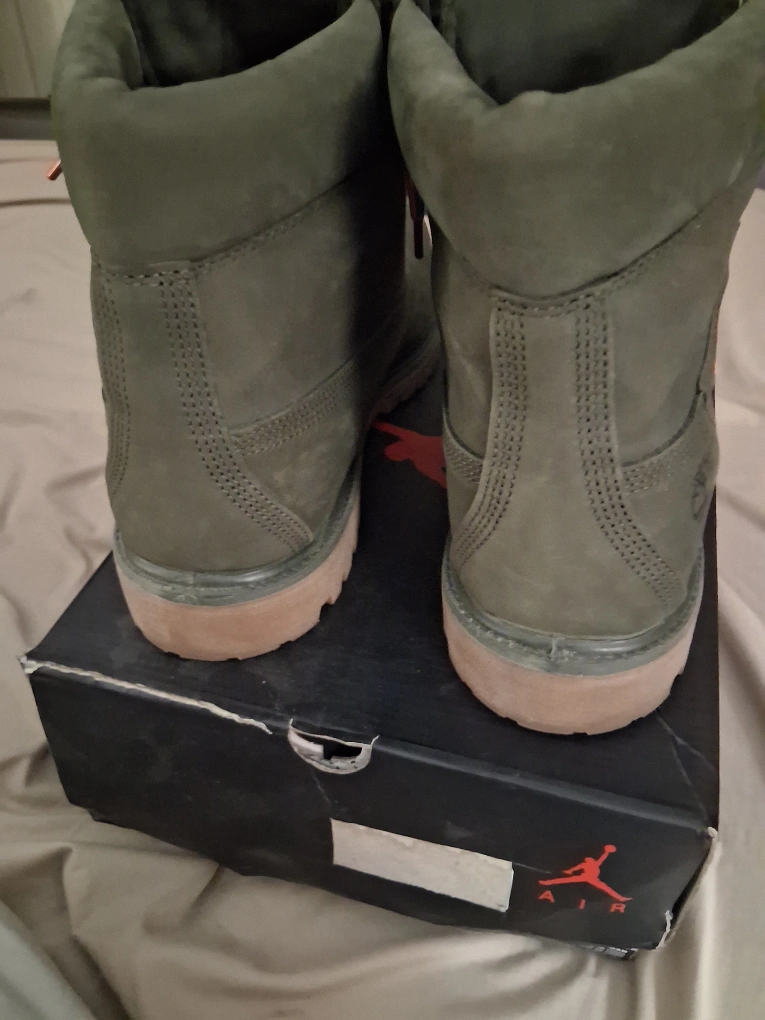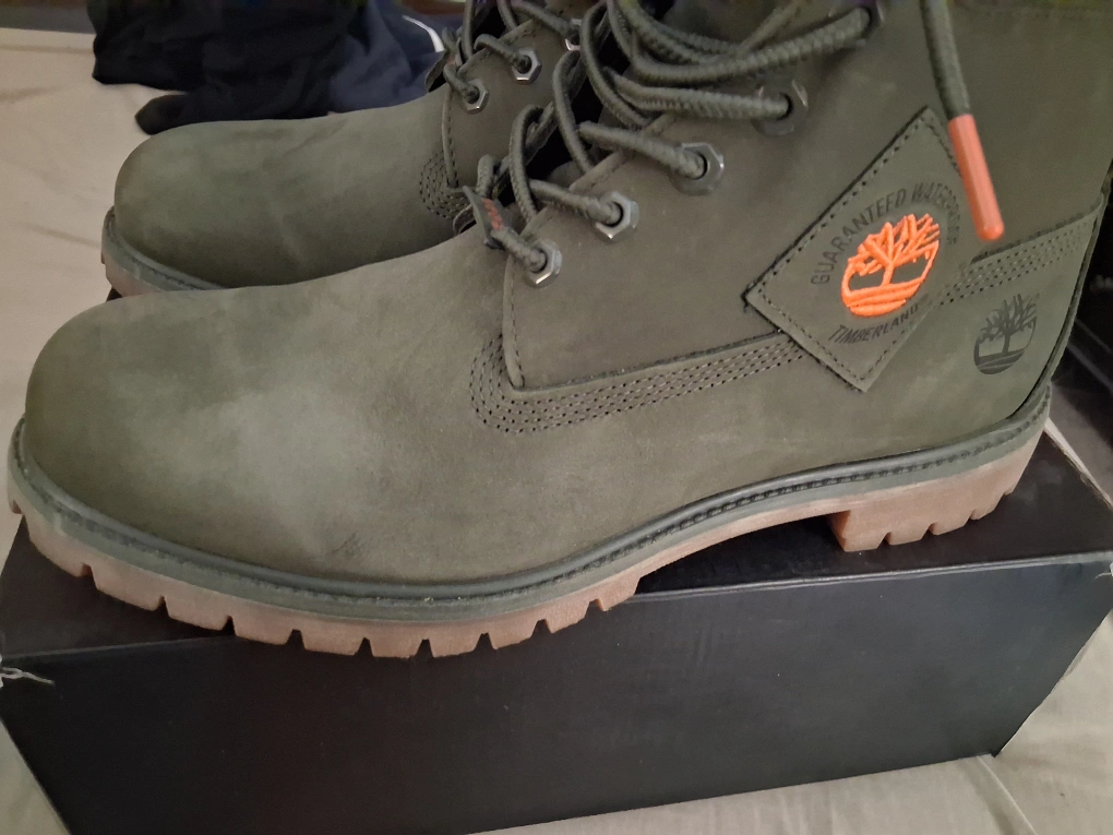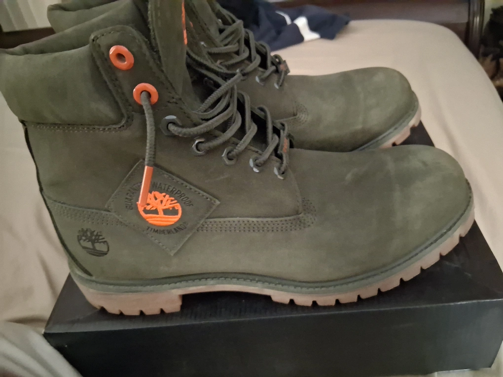 Selling a pair of Timberland waterproof boots in olive green! They're in great condition... only worn once.. Perfect for all weather!
