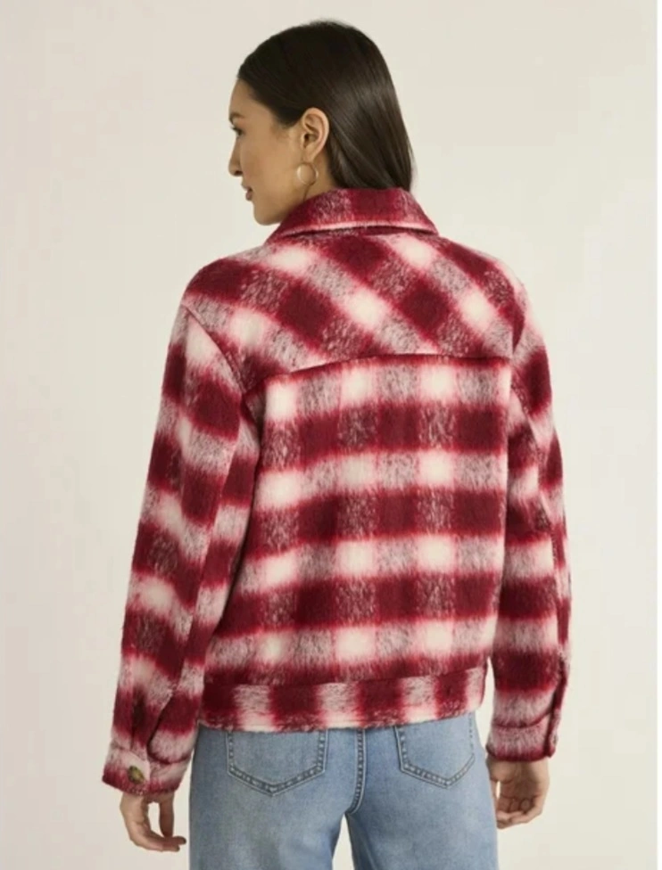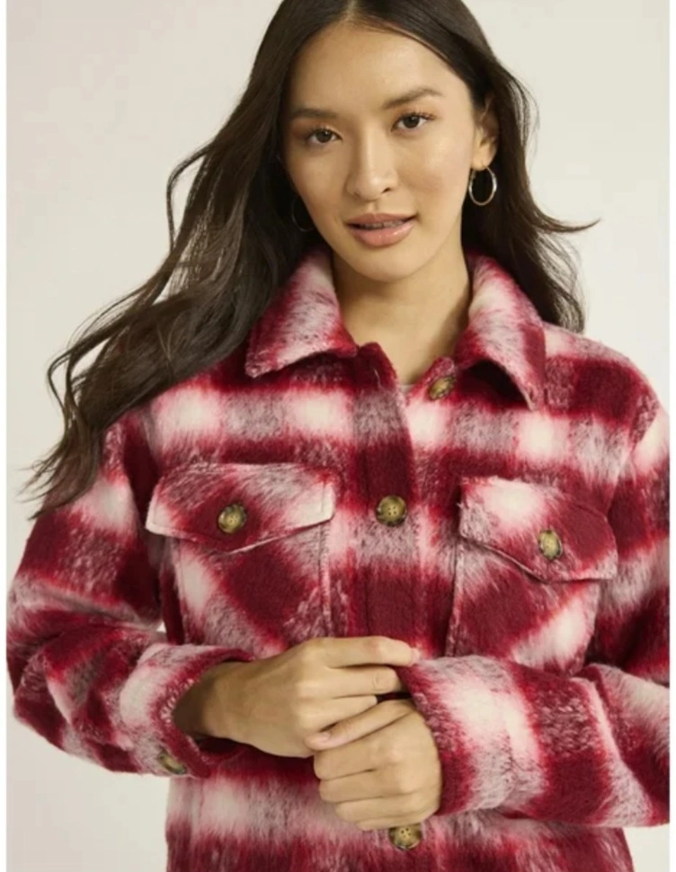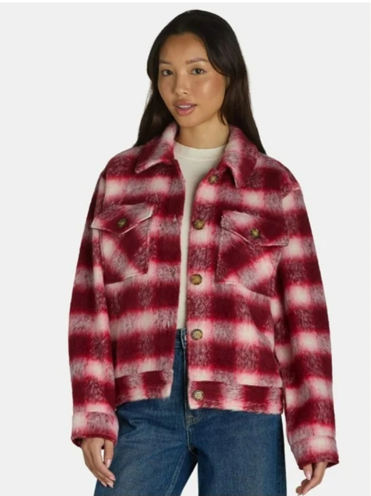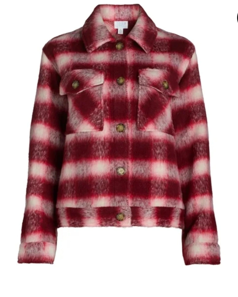 Selling a time and tru plaid shacket in burgundy red and white! It's in great condition and perfect for layering. The material is soft and cozy, making it ideal for cooler weather. It features a classic plaid pattern with front pockets and button closure.( we also ship) size: small and XXXL