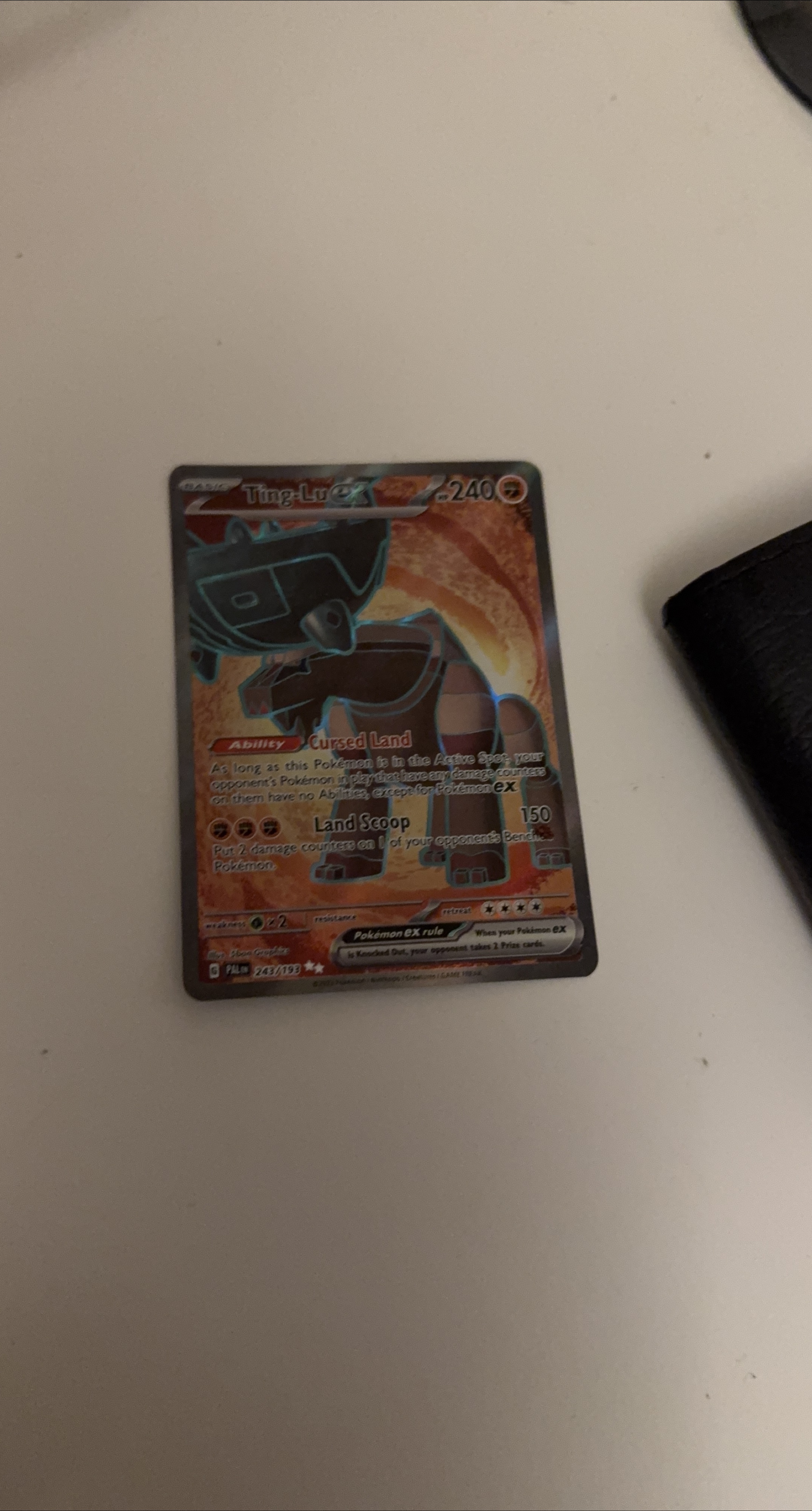 Selling a Ting-Lu EX Pokemon card! It has the Cursed Land ability and Land Scoop attack. The card number is PAL 243/193. It is in good condition.