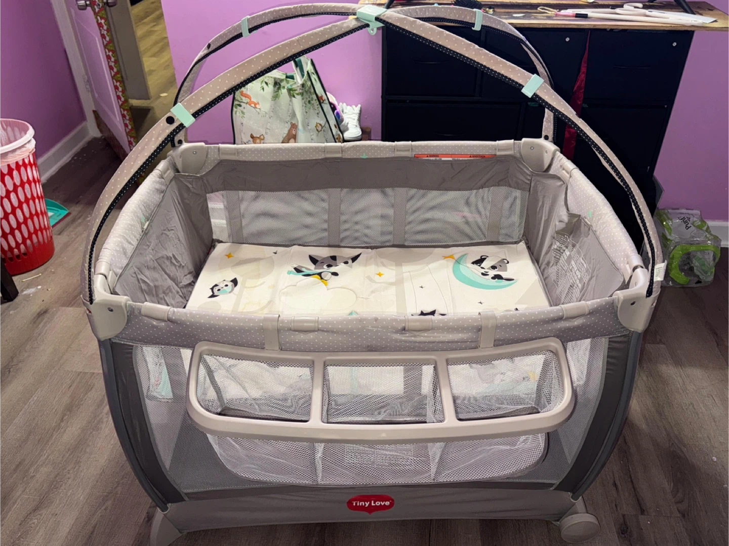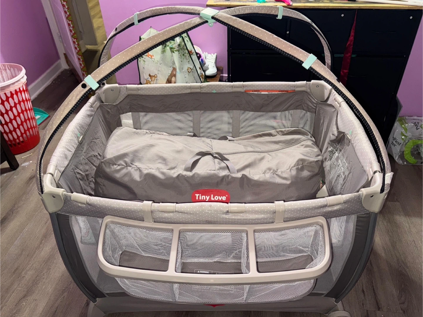 60Selling a Tiny Love 3-in-1 Rocker Napper. It's in great condition and ready for a new home! This versatile rocker napper easily converts into a cozy bassinet, providing a safe and comfortable space for your baby to play or nap. It features gentle rocking motions and calming vibrations to soothe your little one. The adjustable canopy helps create a peaceful environment, and the lightweight design makes it easy to move from room to room