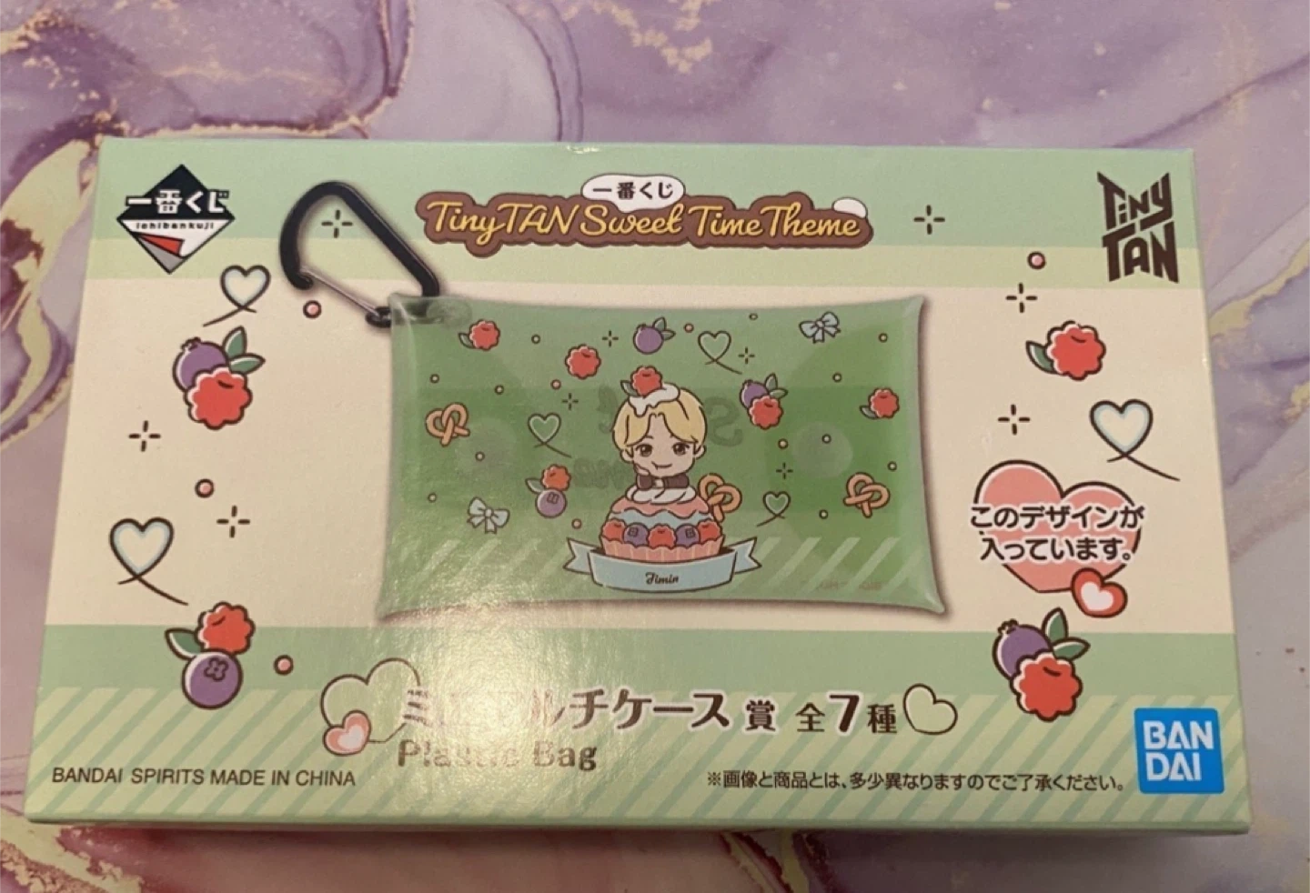 - brand new, no marks, and no defects - green pouch on the hook - tiny tan Jimin sitting on tart