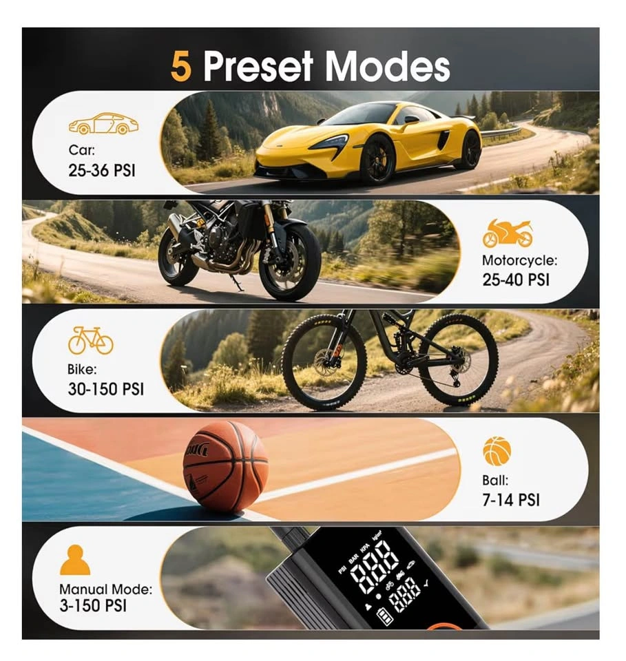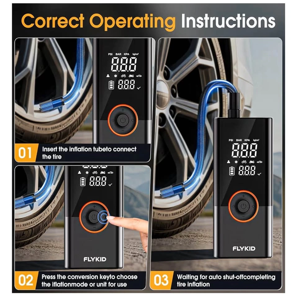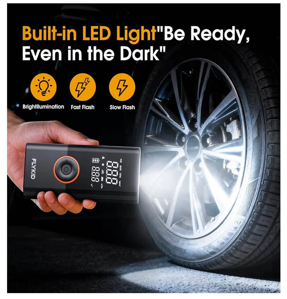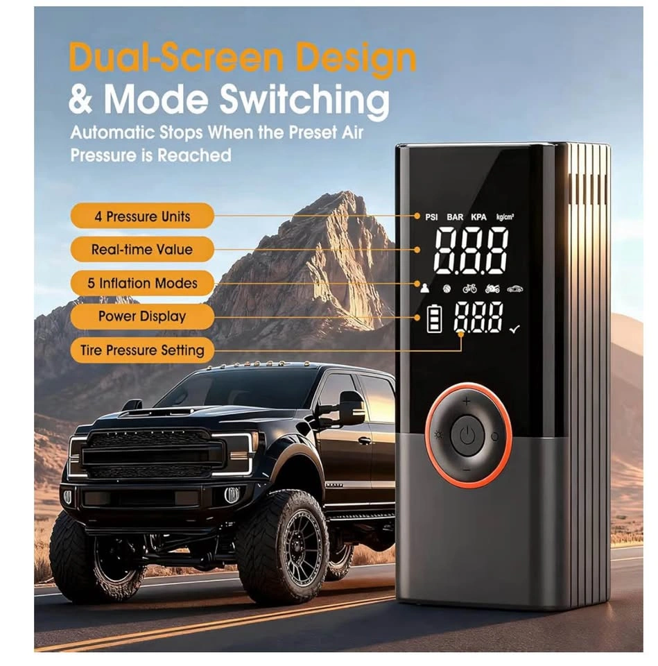 116BRAND NEW IN BOX, Tire Inflator Portable Air Compressor - 150PSI Digital Air Pump for Car Tires, Fast Inflation for SUV/Motorcycle/Bicycle, LED Light, Rechargeable Battery - Roadside Emergency & Outdoor Use