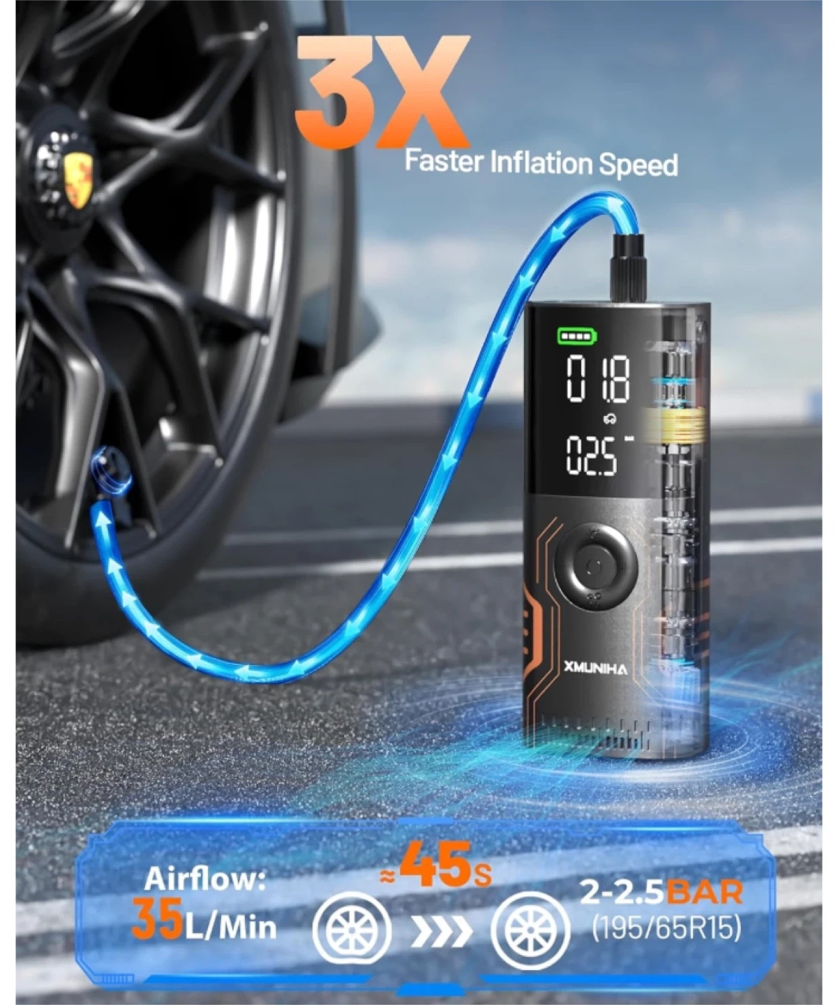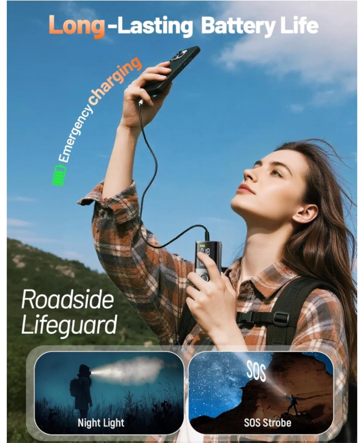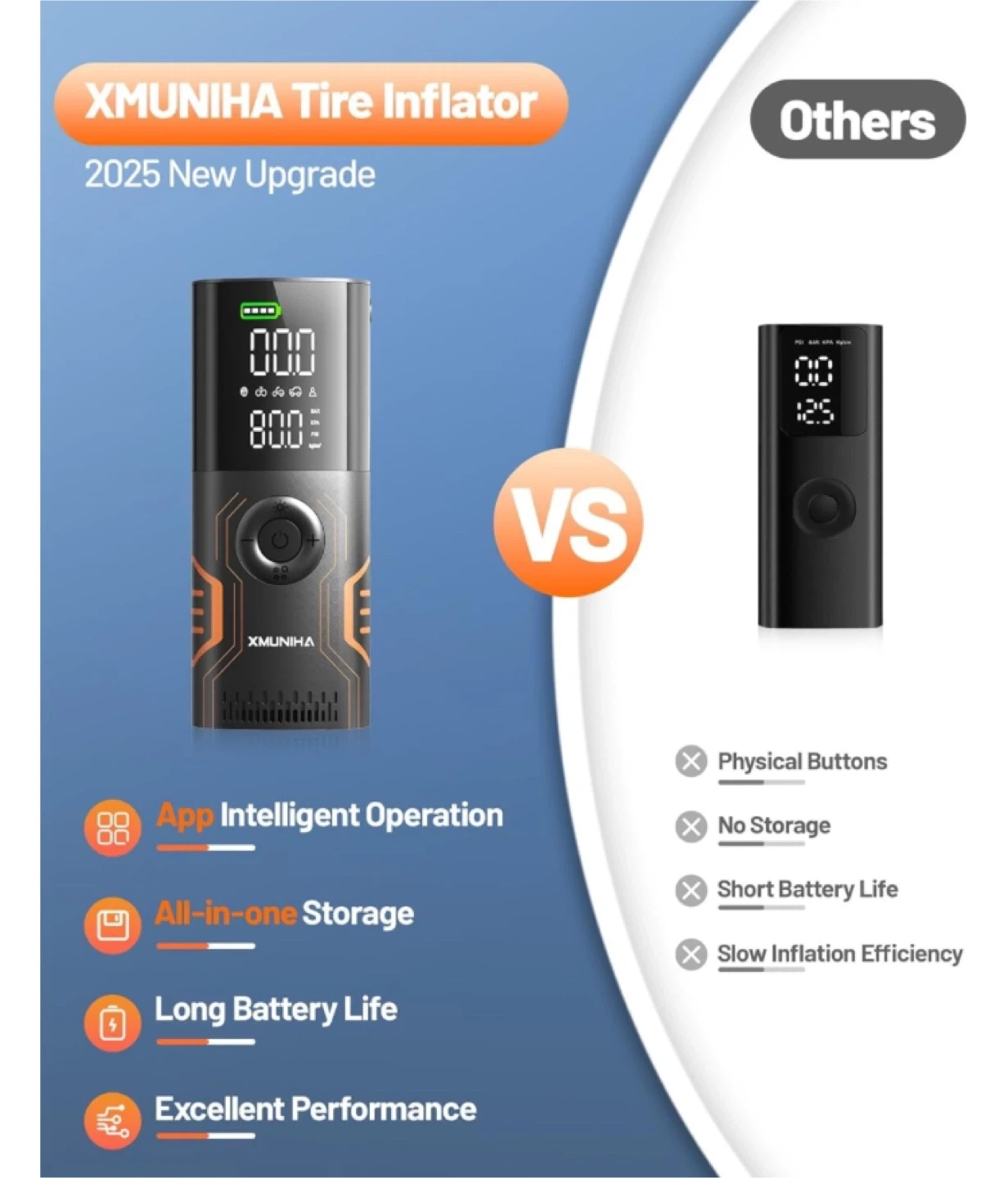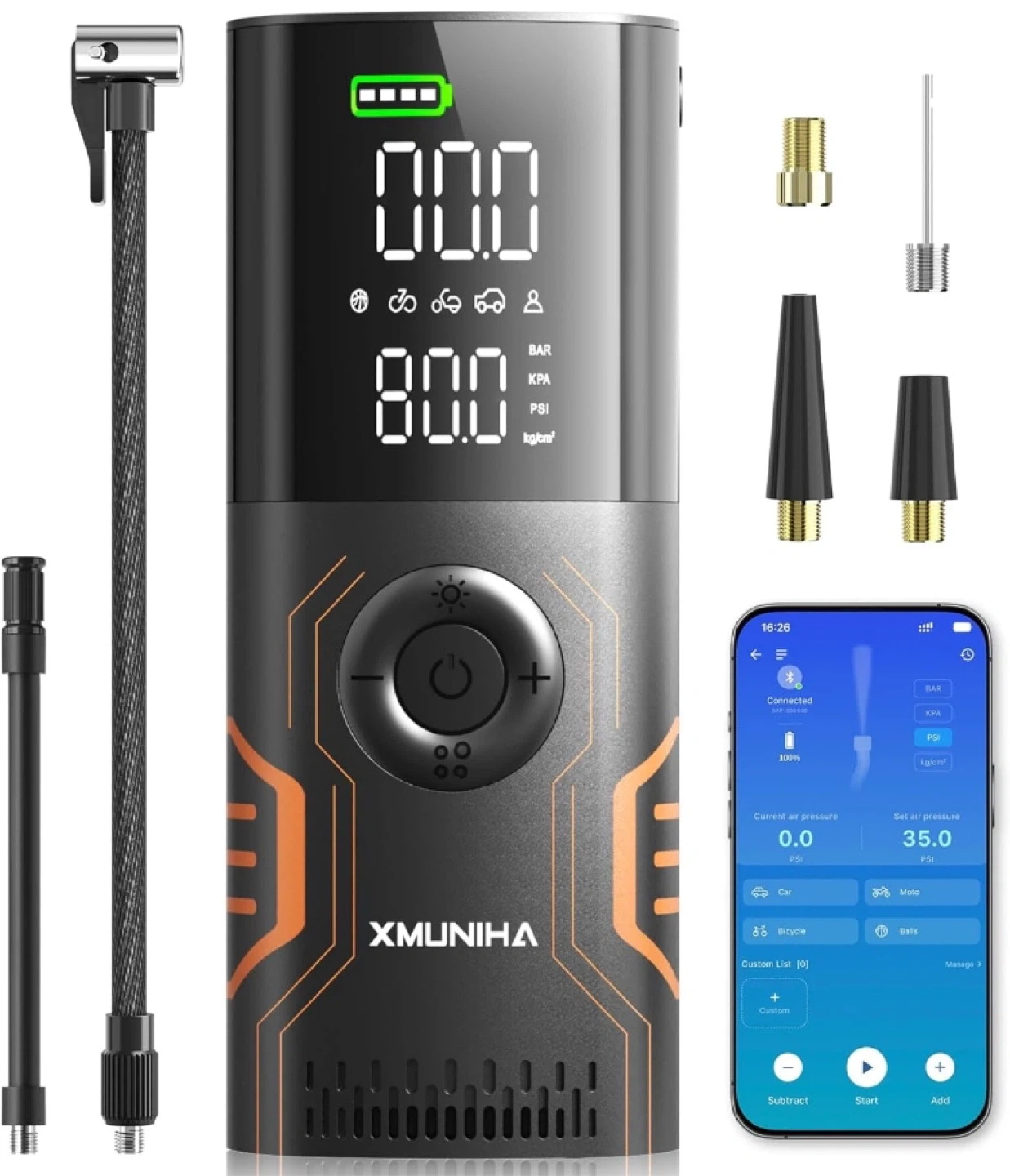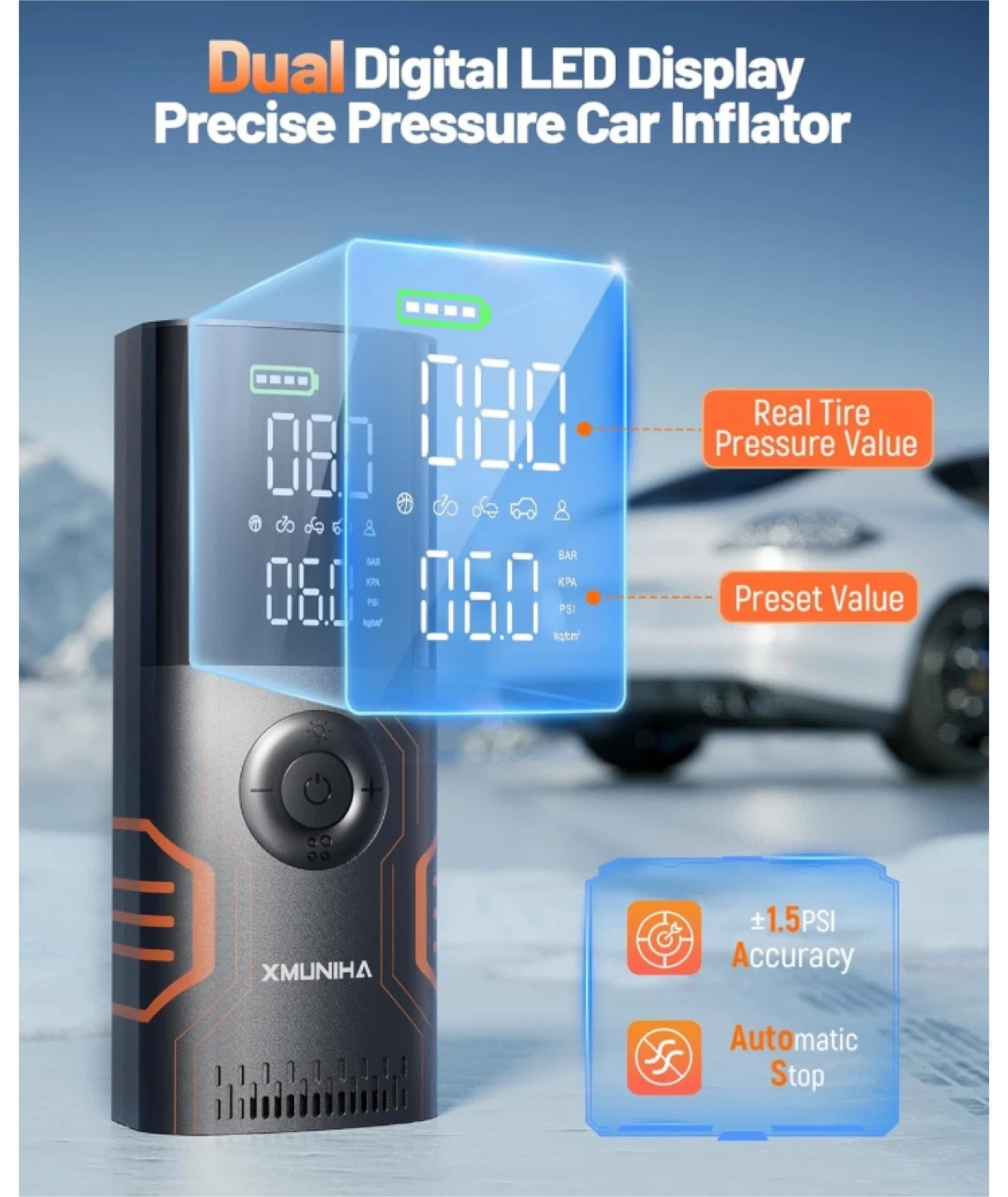 60Tire Inflator Portable Air Compressor - Smart APP Control Bike Pump, All-in-One Storage Air Pump for Car Tires, 150PSI Tire Pump with Digital Gauge, Cordless Pump for Car, Motorcycles, Bikes, Balls