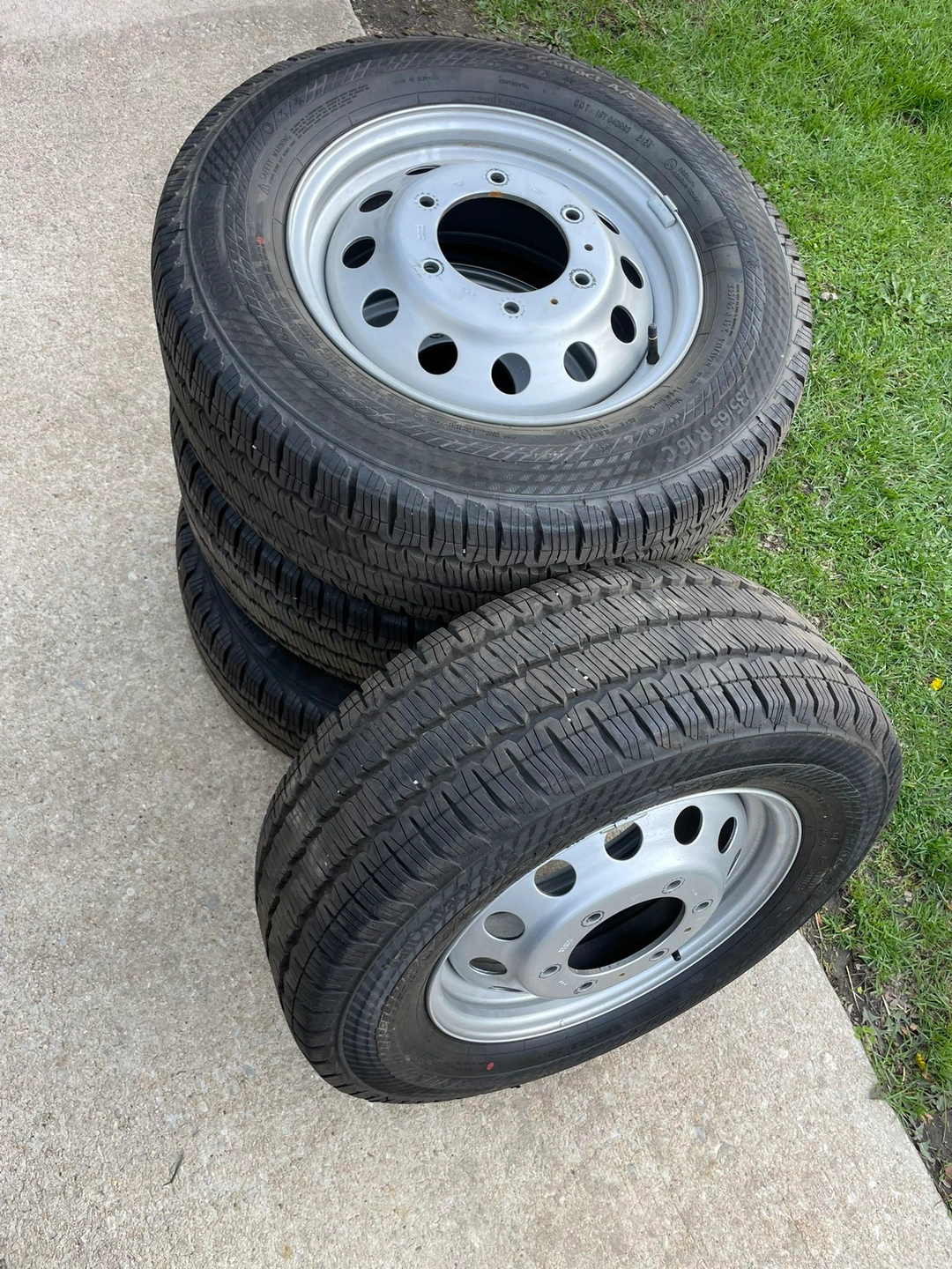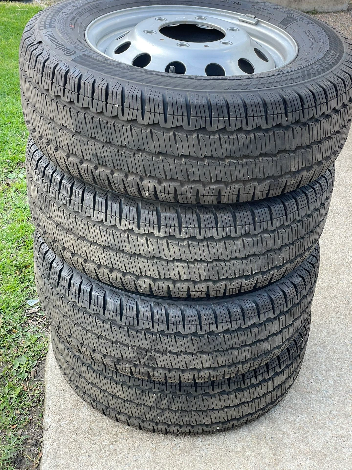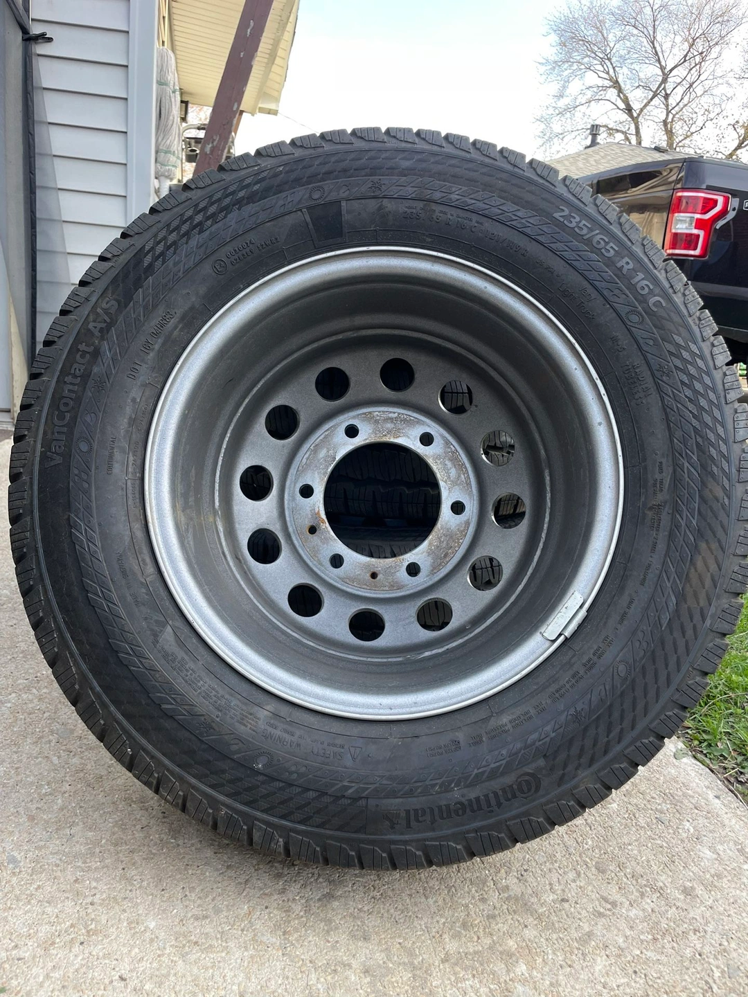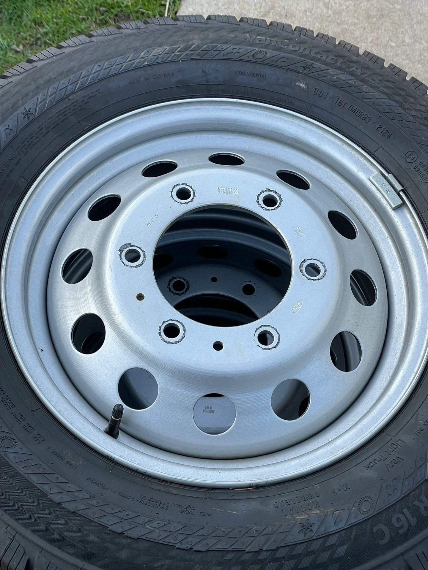OEM set of 4 Rims, Tires, and Sensors. For: Ford Transit with 6 Lug Nuts. 4 Hub Caps and 24 Lug Nuts. Continental 235/65R16 C Check your vehicle make sure has 6 Lug Nuts. Pick up only. Cash only.