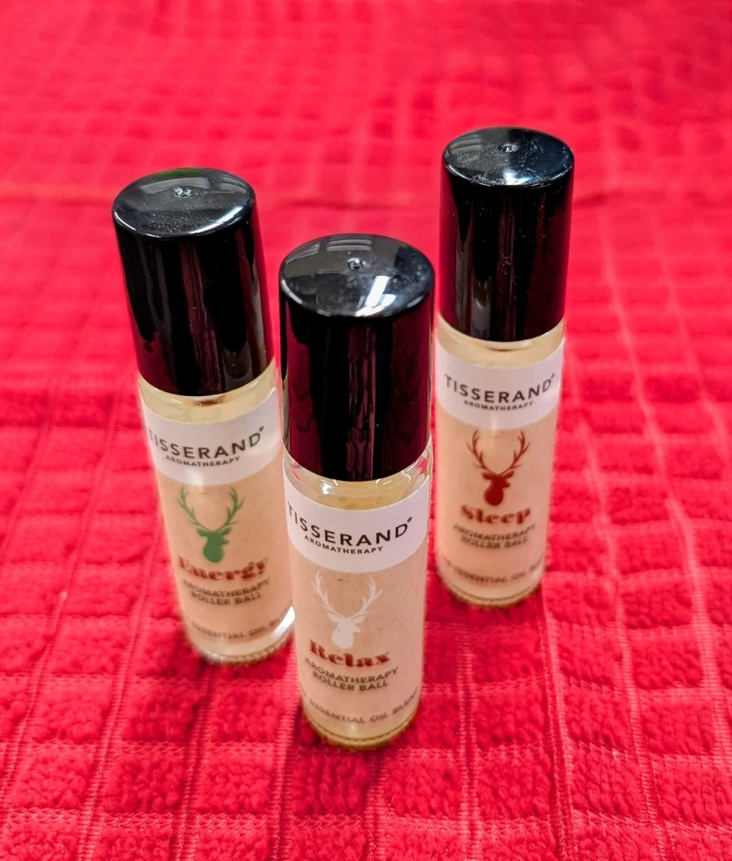 152Here's a set of three Tisserand Aromatherapy Roller Balls! Each is 10ml (0.34 fl oz). Includes: - Energy (Boost your energy & find your shine) - Relax (Less stress, more calm, happy you) - Sleep (Sleepy nights, brighter mornings) They are pure essential oil blends and are perfect for on-the-go aromatherapy