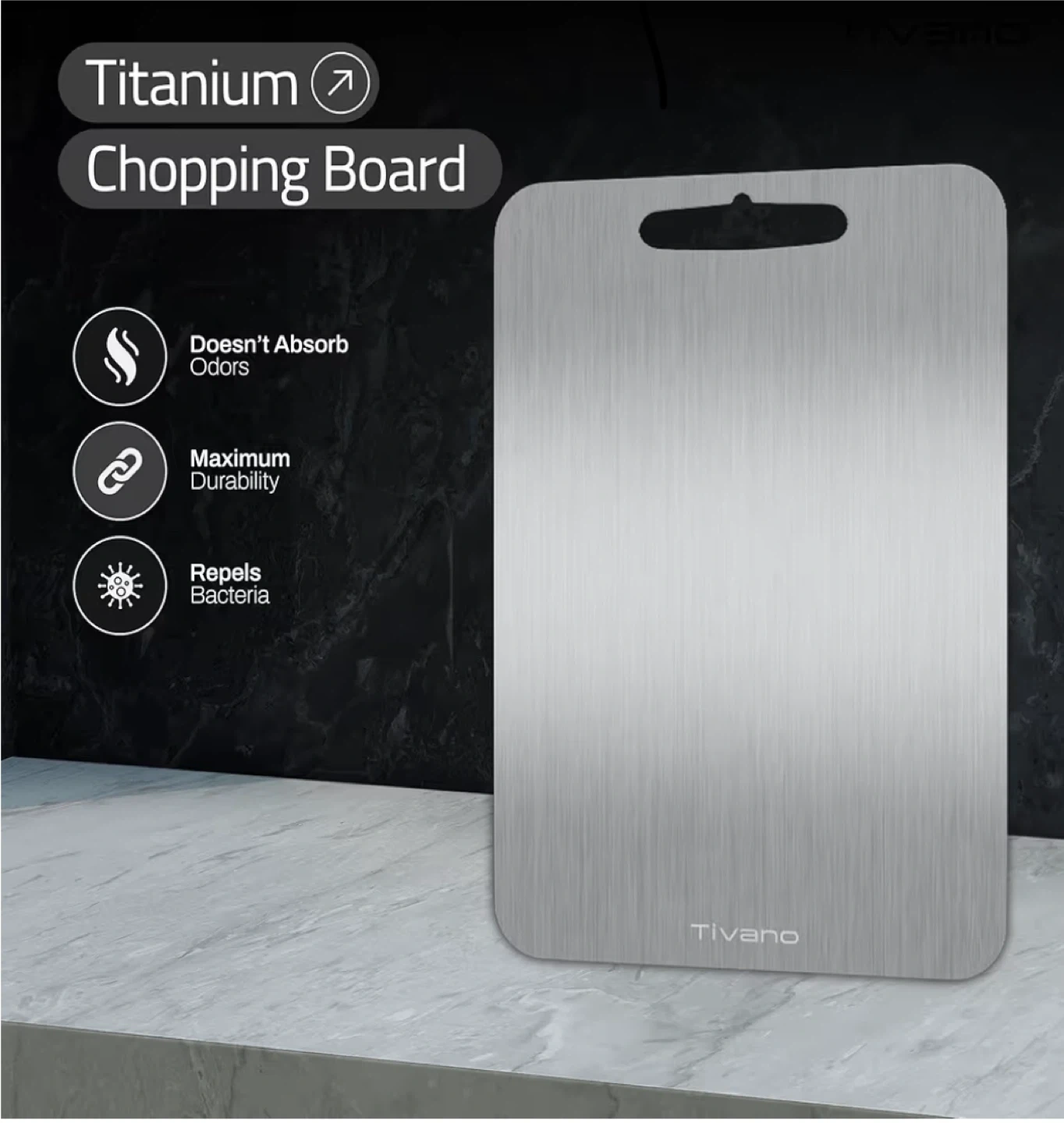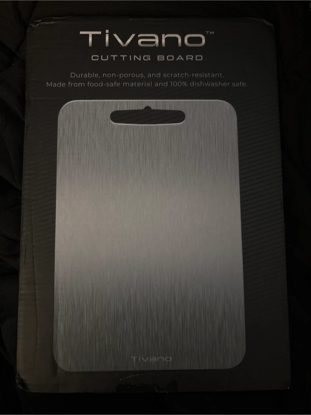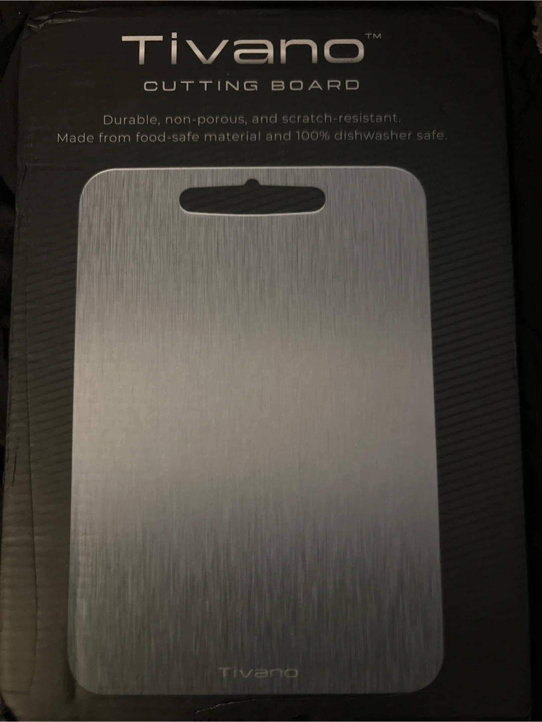1000+Selling a brand new Tivano Titanium cutting board! It's still in the box and has never been used. - Durable, non-porous, and scratch-resistant - Made from food-safe material - 100% dishwasher safe - Includes 1 metal cutting board (29cm x 20cm | 11.4" x 8") - Orderless and antibacterial