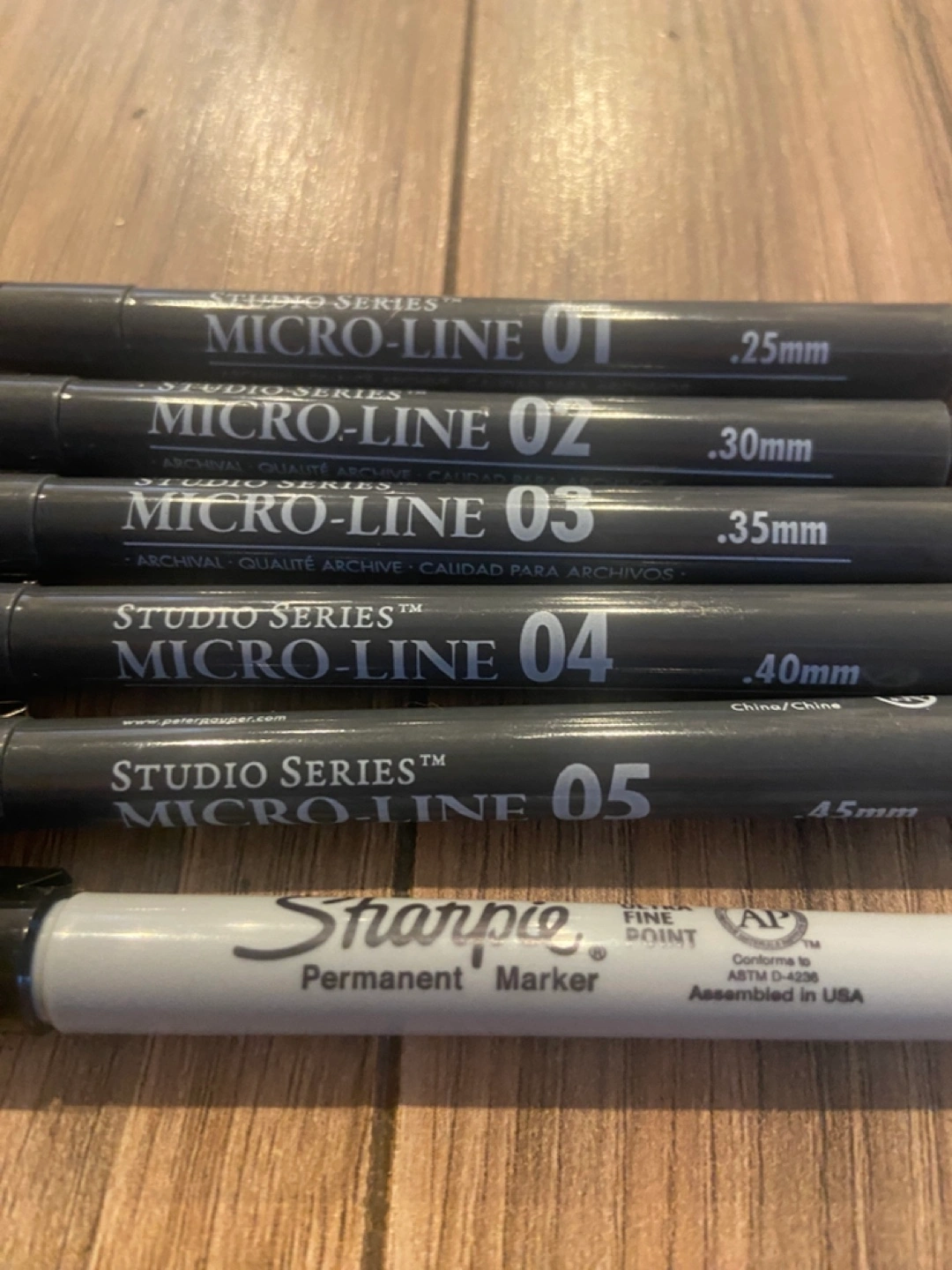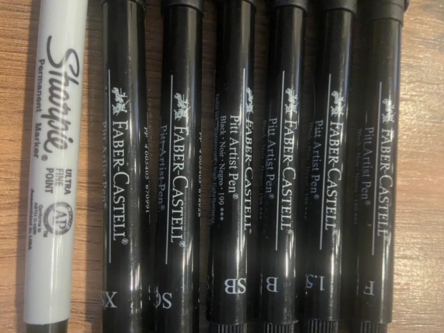 Selling a collection of Faber-Castell Pitt Artist Pens and Studio Series Micro-Line pens. Perfect for artists and hobbyists! Includes various sizes and tips for different drawing and writing needs. Also includes Sharpie permanent markers.