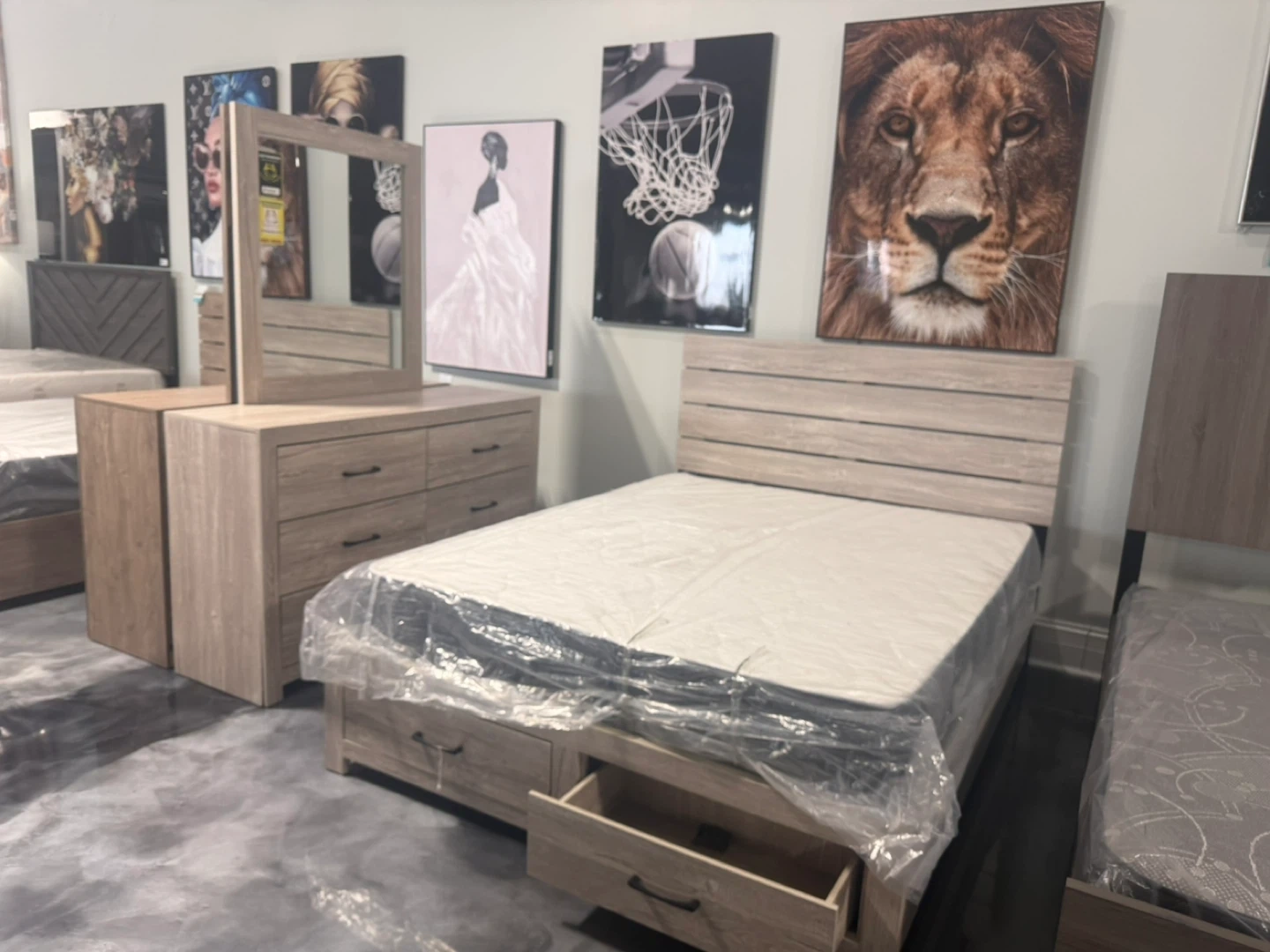 Light Wood Queen Bed Frame Mattress with Storage Drawers