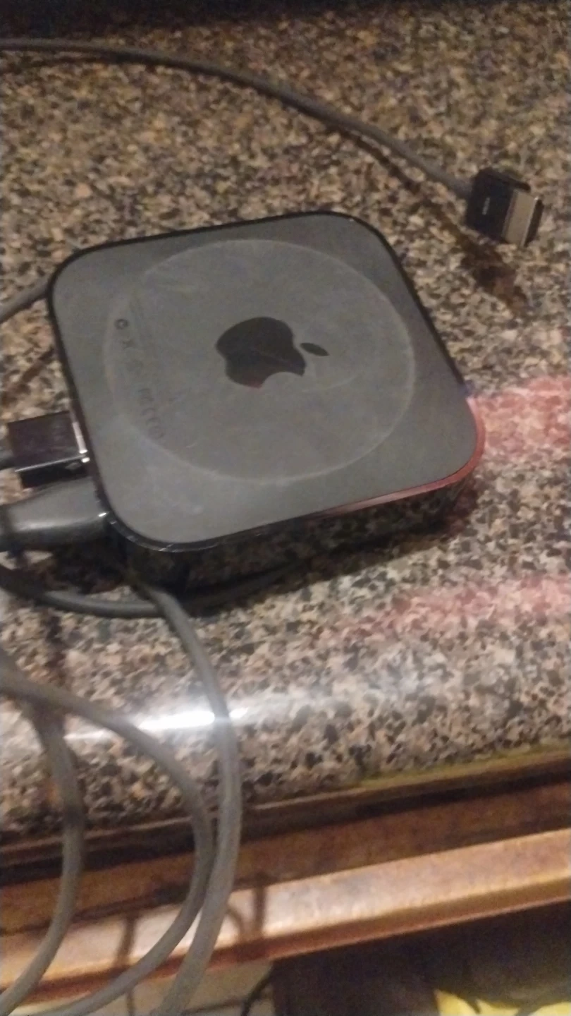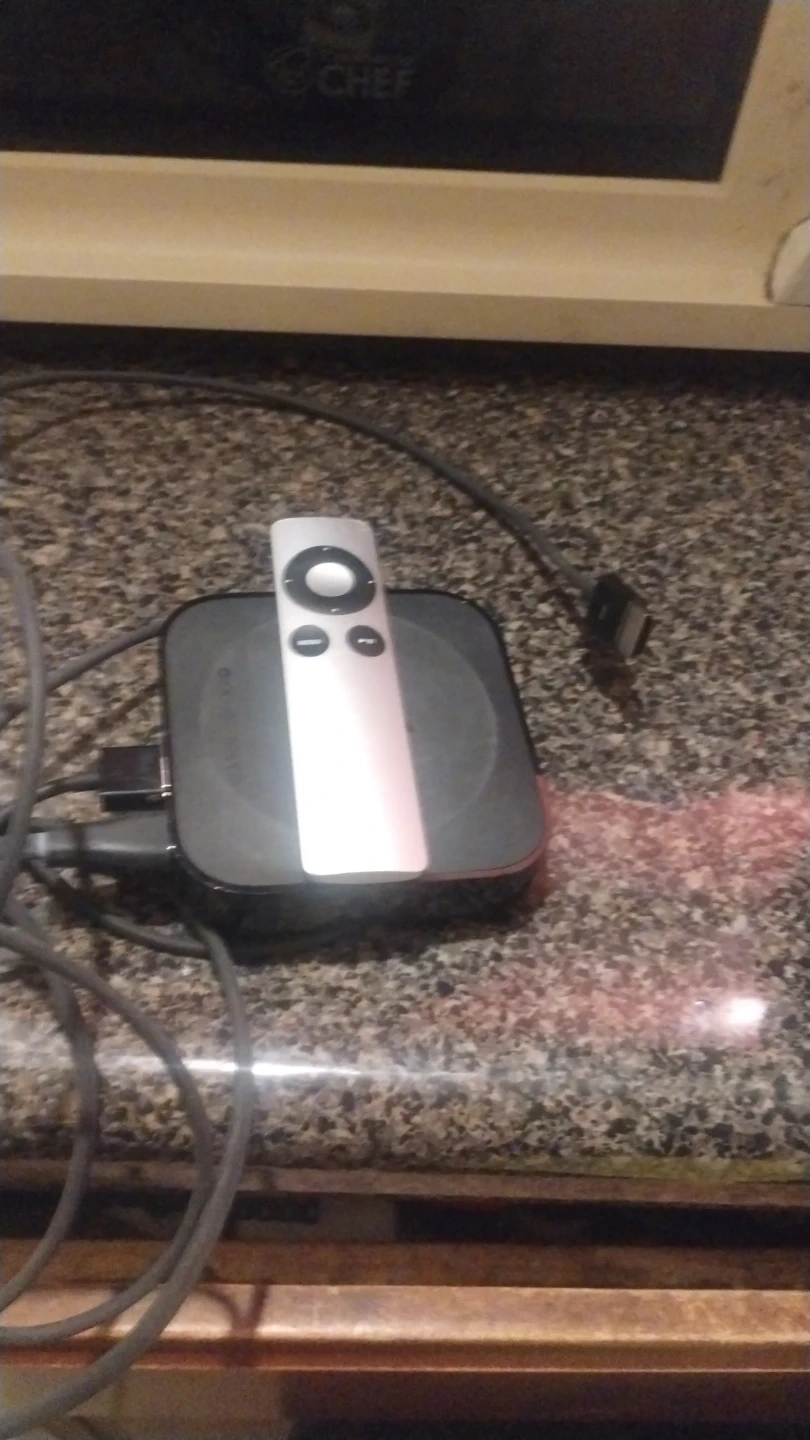 Apple TV (2nd Generation) streaming media player. Includes the silver aluminum remote. Connects to your TV for streaming content. Has HDMI output.