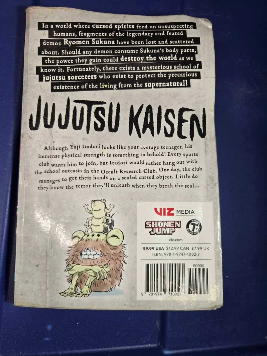 This is volume 1 of the Jujutsu Kaisen manga series, written and illustrated by Gege Akutami. It collects the initial chapters of the popular supernatural action story. The manga is in English and features black and white interior pages.