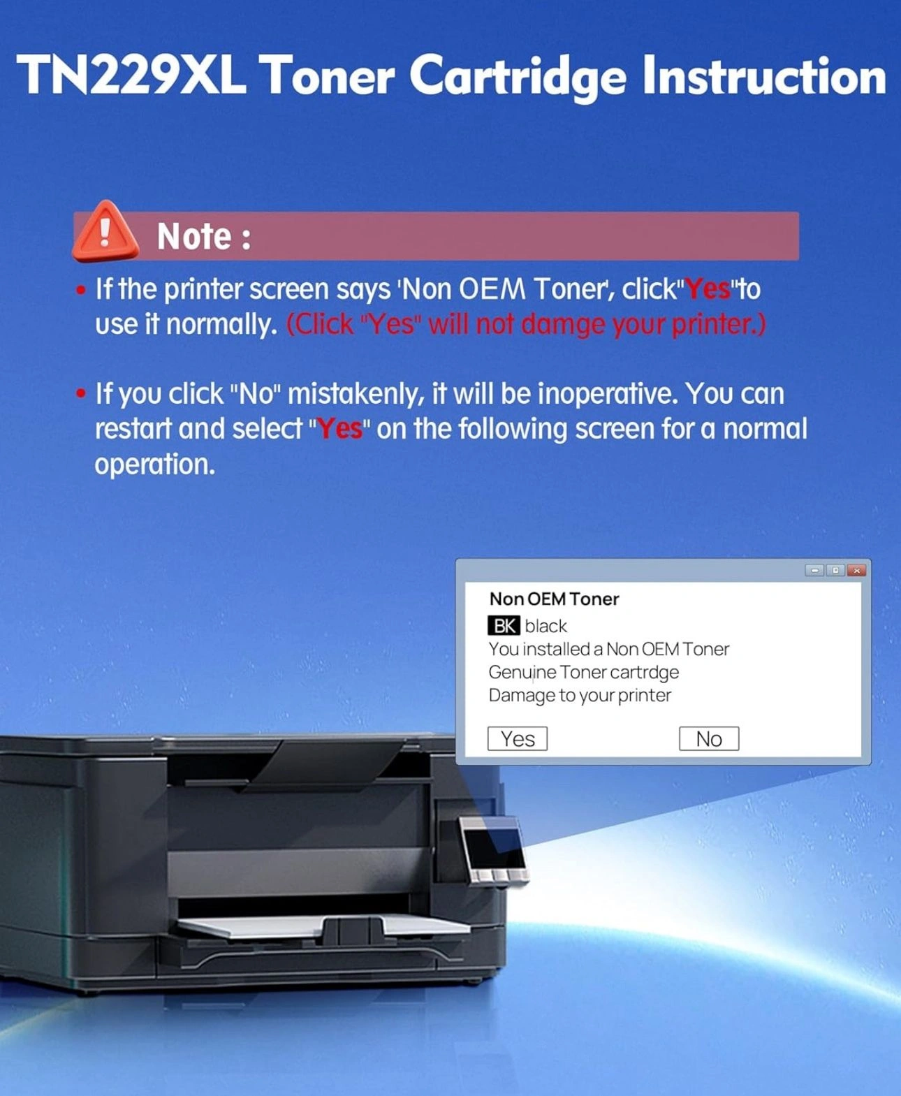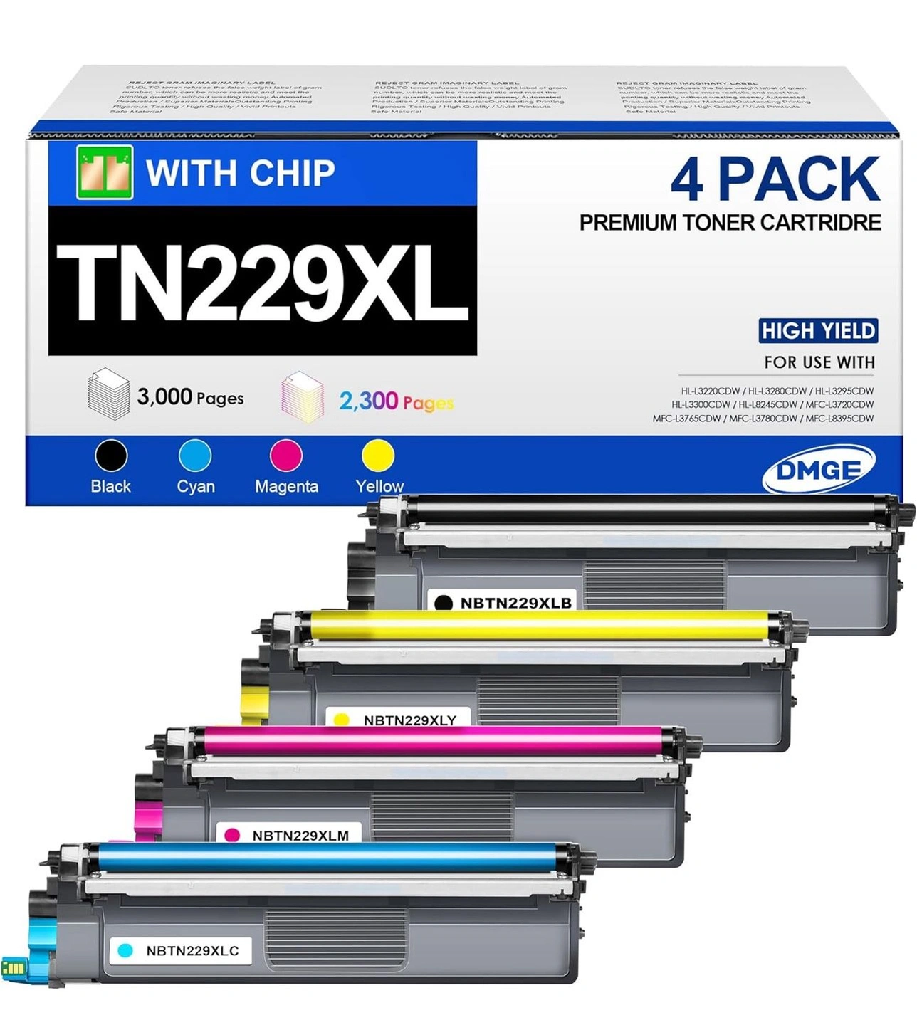 TN229XL TN229 Toner 4 Pack Compatible with Brother MFC-L3780CDW MFC-L3720CDW HL-L3280CDW HL-L3220CDW HL-L3295CDW, TN229XL