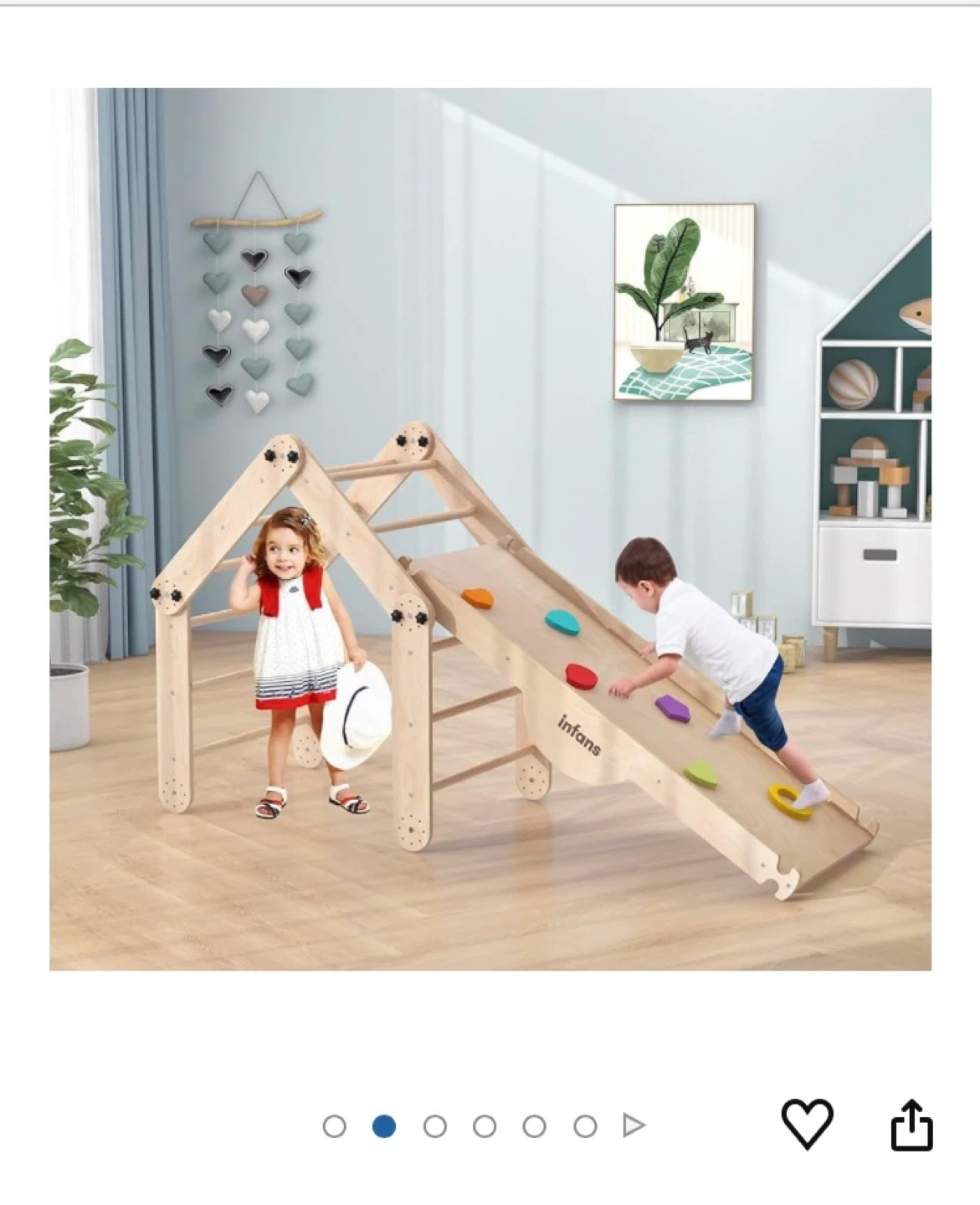 60This is a wooden climbing playset by toddler. It looks like a great way to keep the kids active and having fun indoors! It's in great condition and ready for a new home
