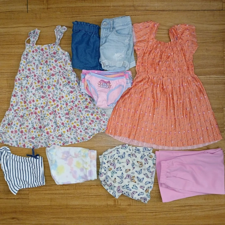 1000+5 long sleeve tops 4 short sleeve tops 4 shorts 1 skirt 14 underwears 1 pajama 3 leggings 2 pants 8 dresses