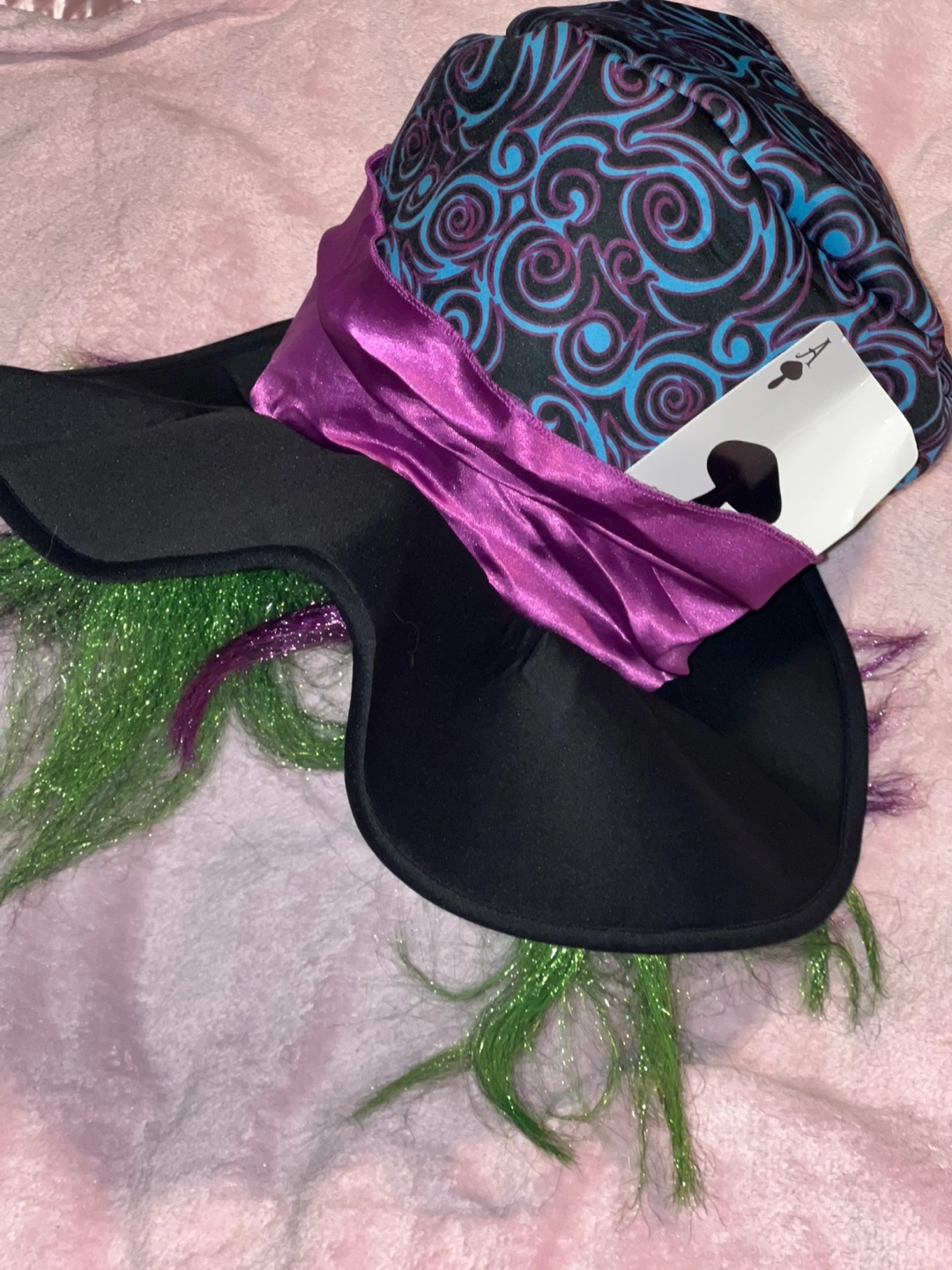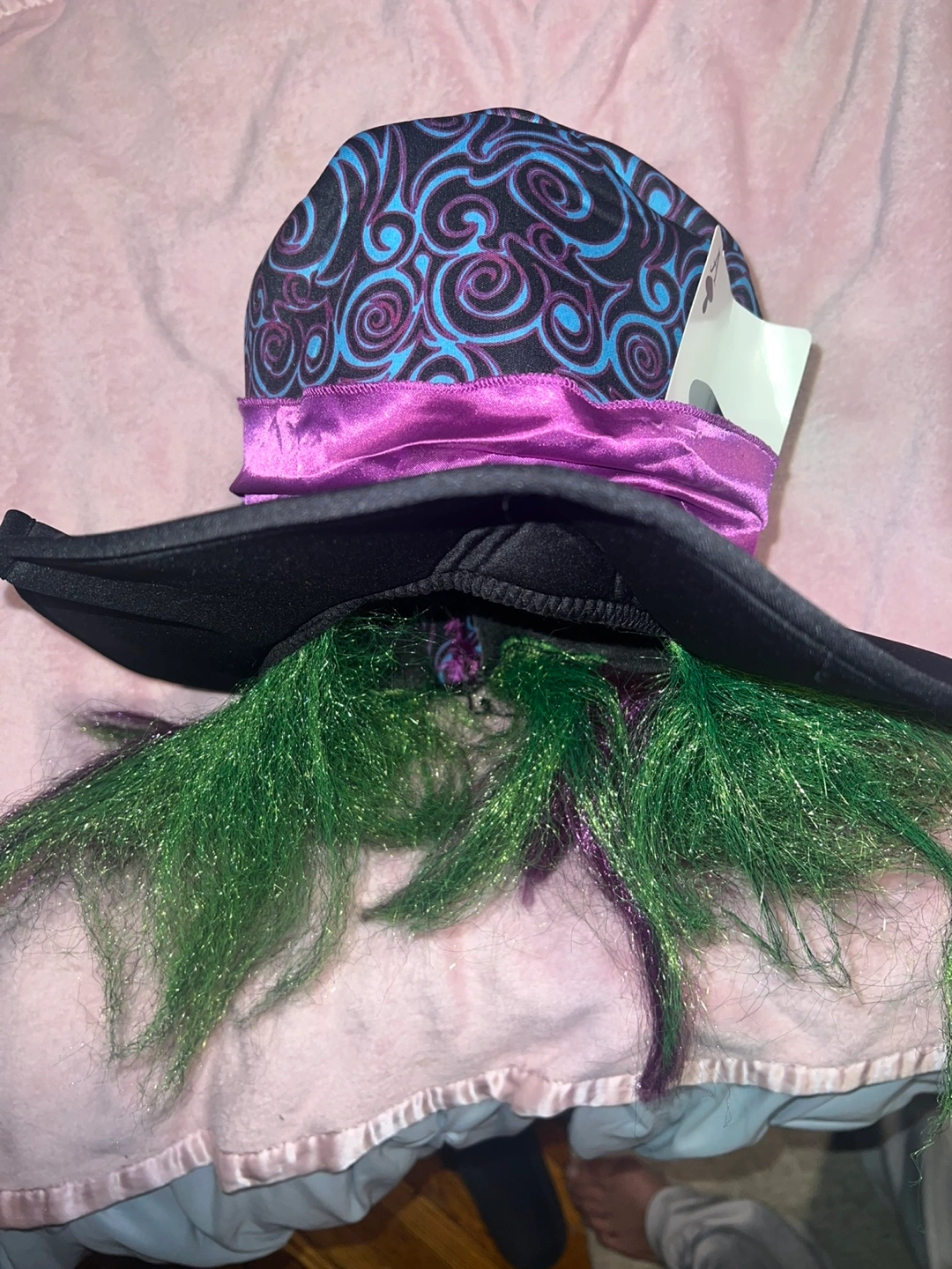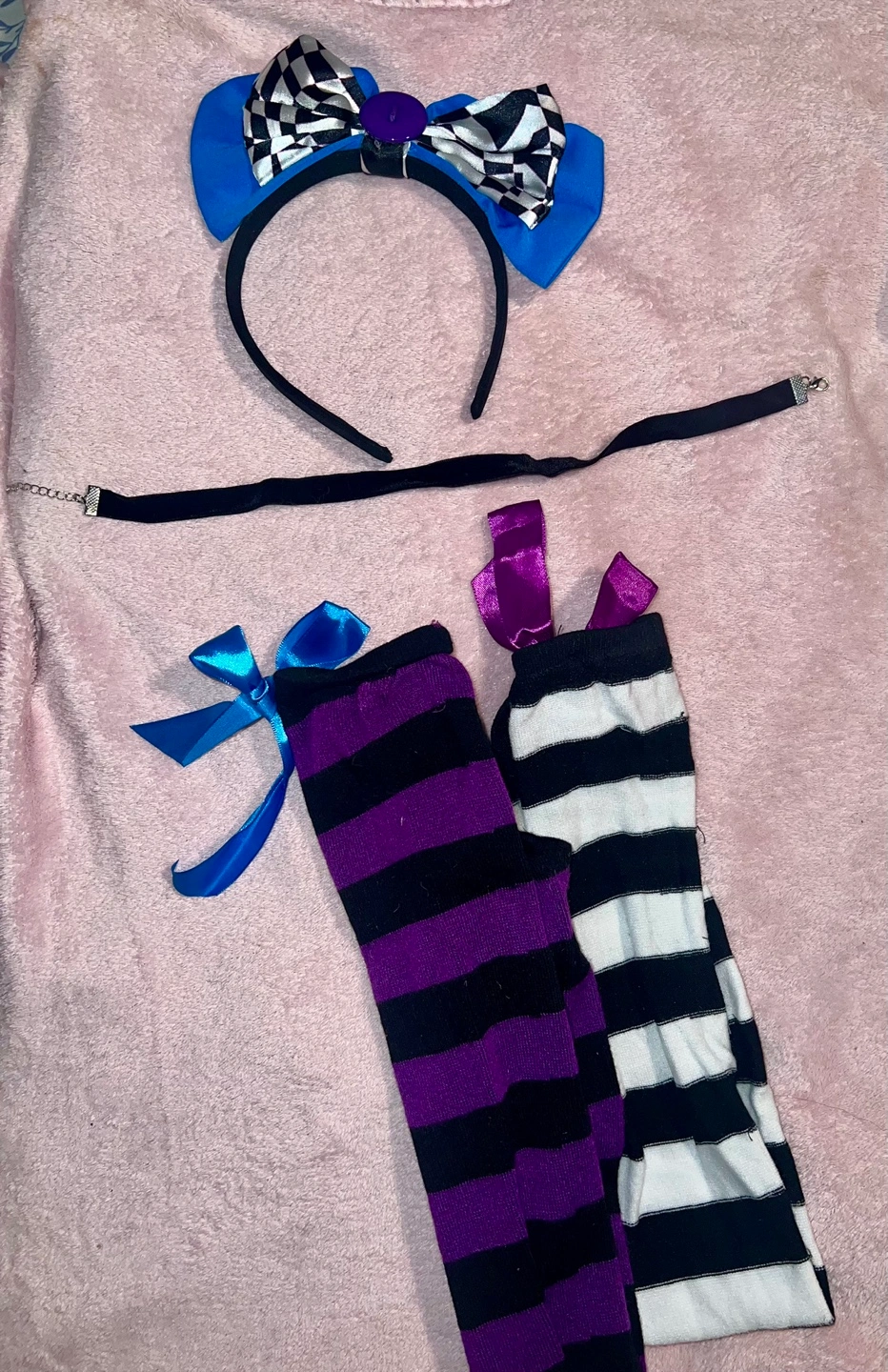 60Selling a Spirit Halloween "Down the Rabbit Hole" and Mad Hatter costumes! It's an adult size large (12-14) and includes the dress, apron, headband, choker, and socks. Also Mad Hatter’s Hat, bow tie, and jacket. The material is 95% polyester and 5% spandex. This costume is perfect for parties or Halloween especially for couples comes together.