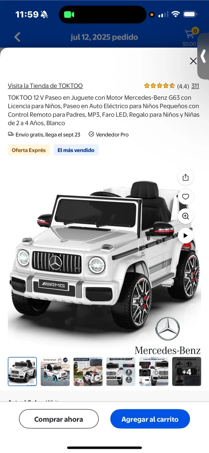Selling a TOKTOO 12V ride-on toy car, specifically a Mercedes-Benz G63 model! It's white and suitable for kids aged 2 to 4 years. It comes with a remote control for parents, MP3 player, and LED lights