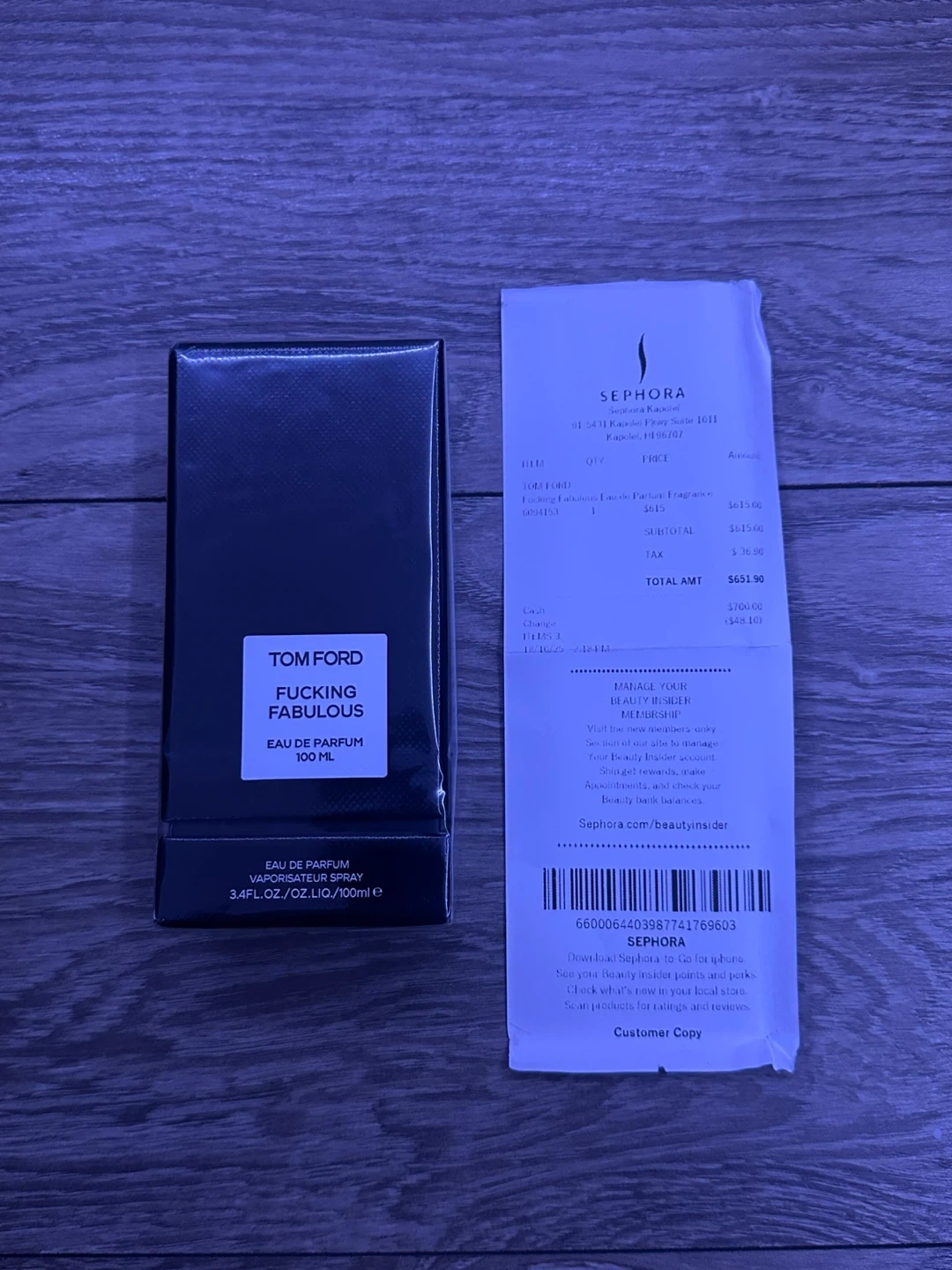 15Selling a Tom Ford Fucking Fabulous Eau de Parfum, 100ml bottle. Originally bought for $615, it's a luxurious scent that comes in its original packaging. The box includes the 3.4FL.OZ./100ml e bottle. It's the perfect addition to any fragrance collection!