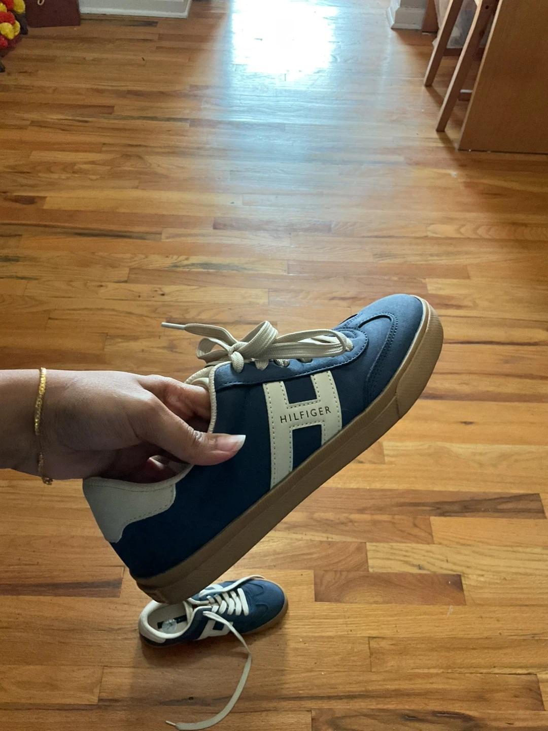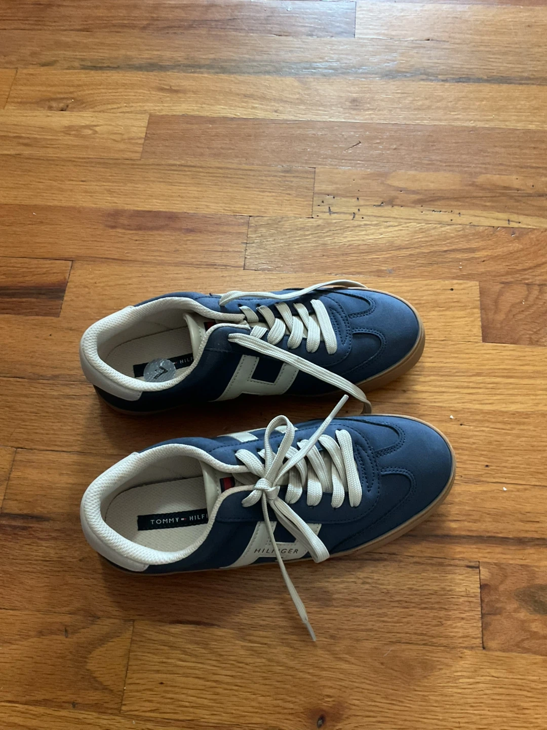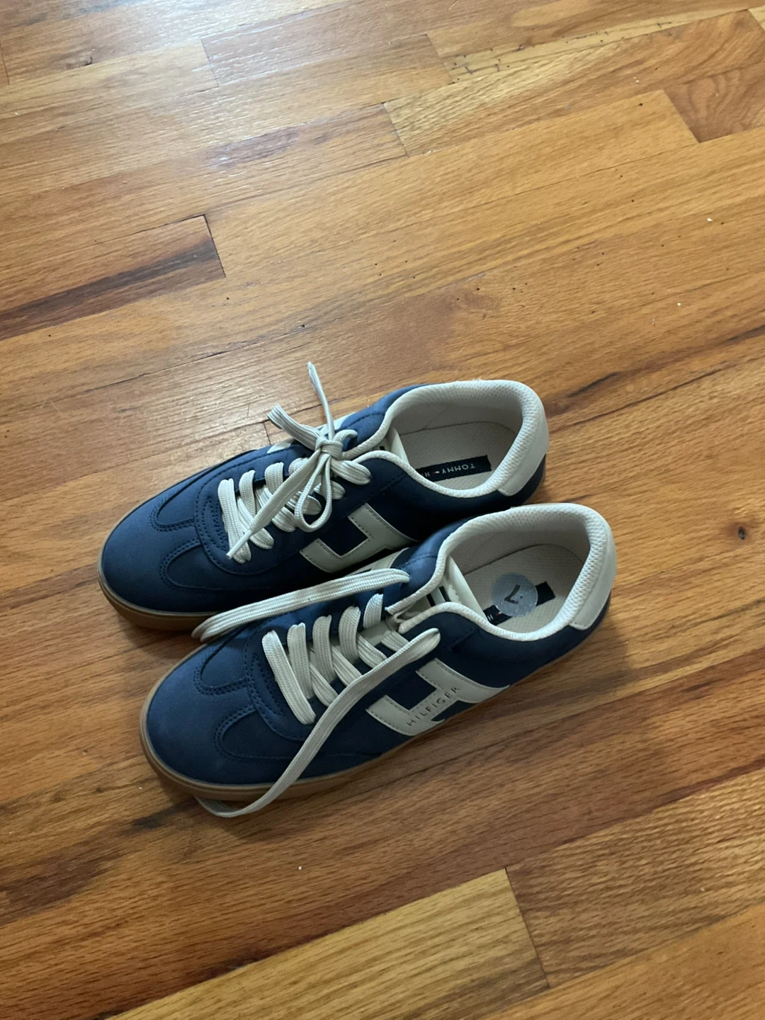7 size Tommy Hilfiger sneakers in a nice blue color! They have the classic Tommy Hilfiger logo on the side. Great for casual wear! Hardly wore them.