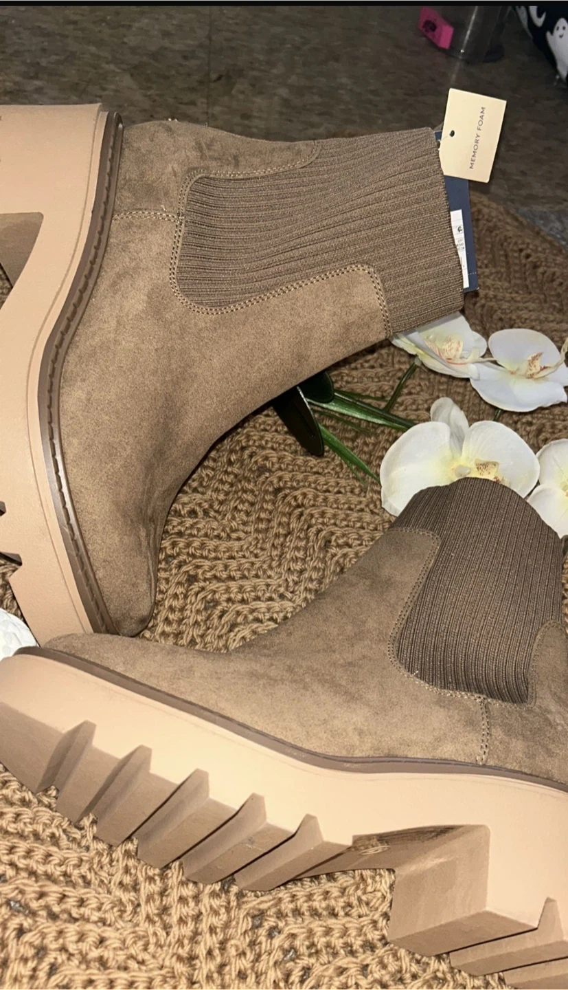 Tommy Hilfiger platform booties with memory foam insoles! They have a cool, chunky platform and a comfortable, sock-like fit around the ankle