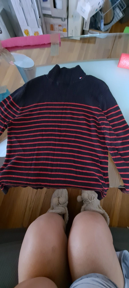 Tommy Hilfiger sweater with red stripes on a black background