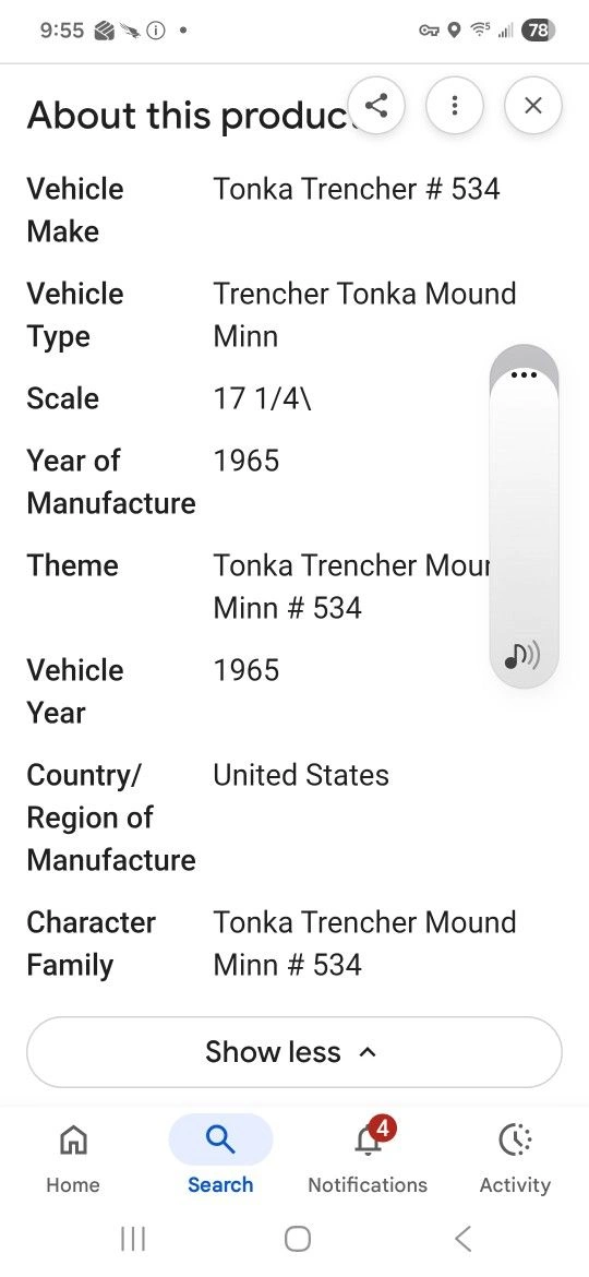68Fully working vintage toy made of pressed steal in excellent overall condition. Manufactured in the USA. Brand: Tonka