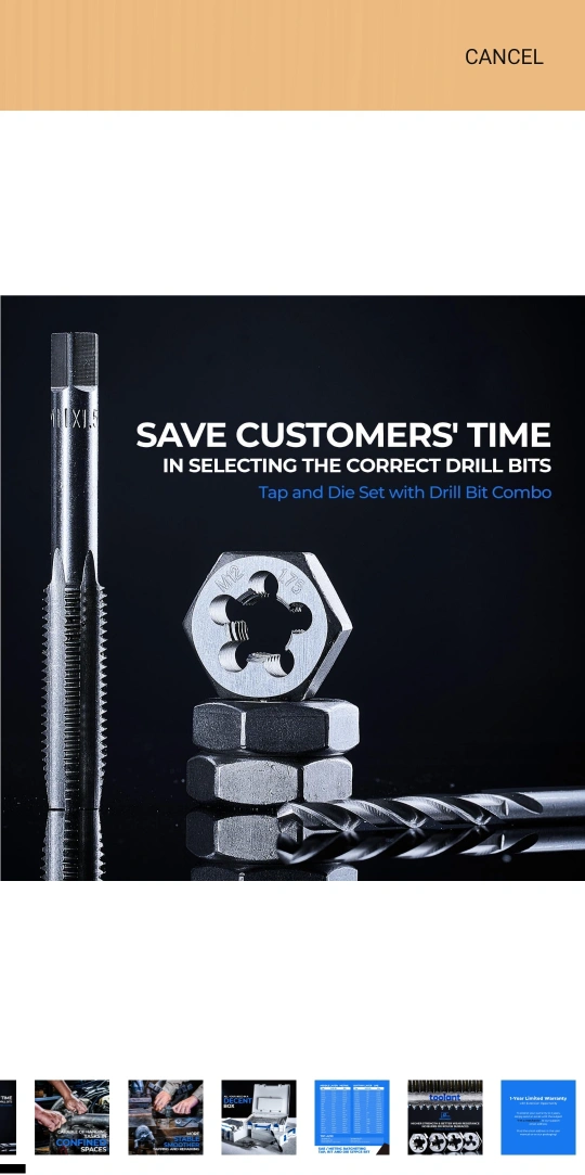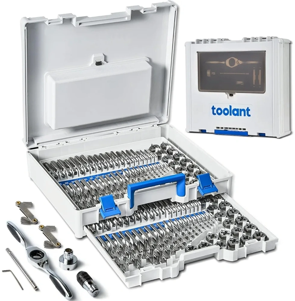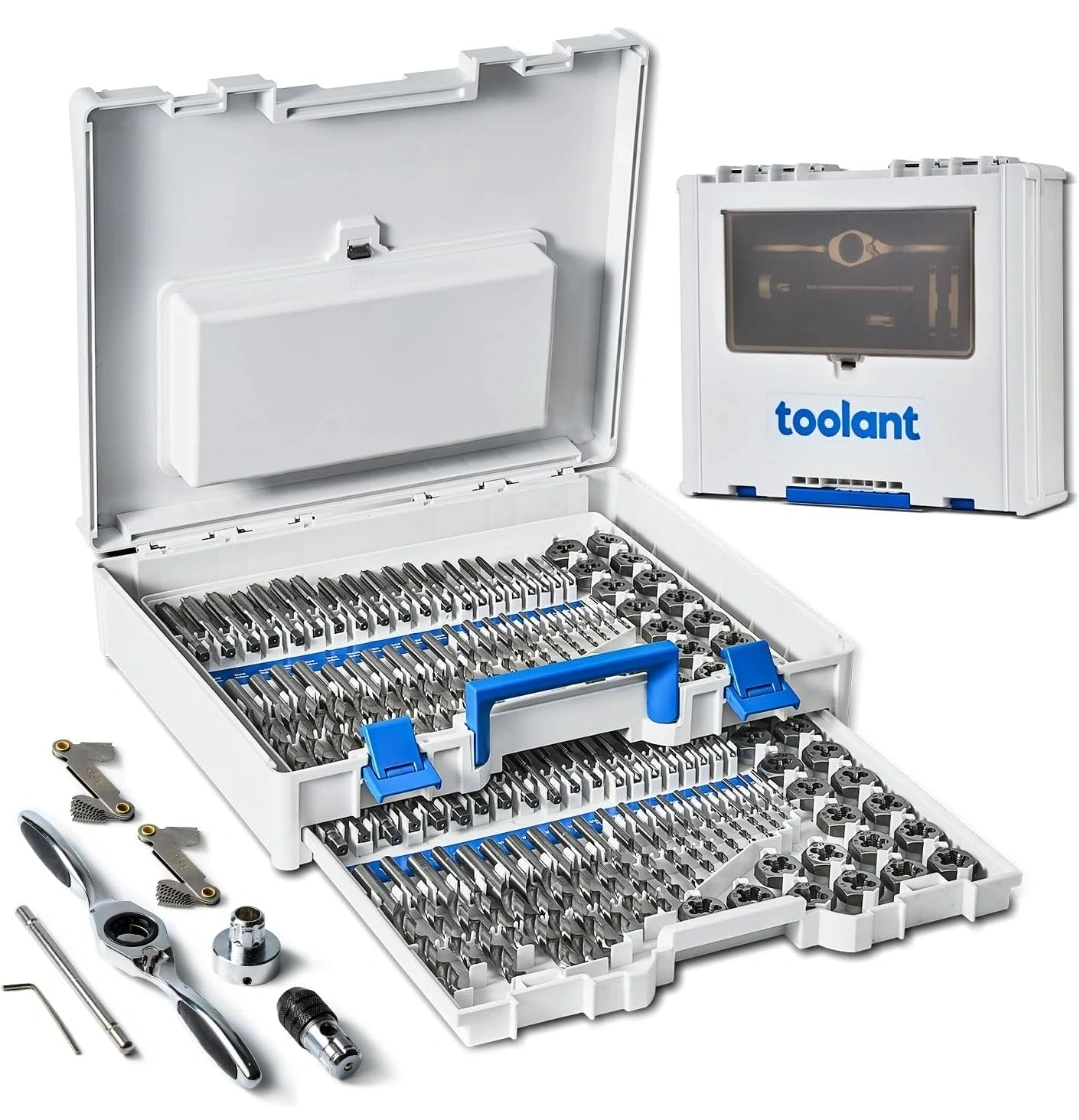 Selling a Toolant Tap and Die Set. This set features premium alloy steel for higher strength and better wear resistance. It's designed to save customers' time in selecting the correct drill bits. Great for tasks in confined spaces!