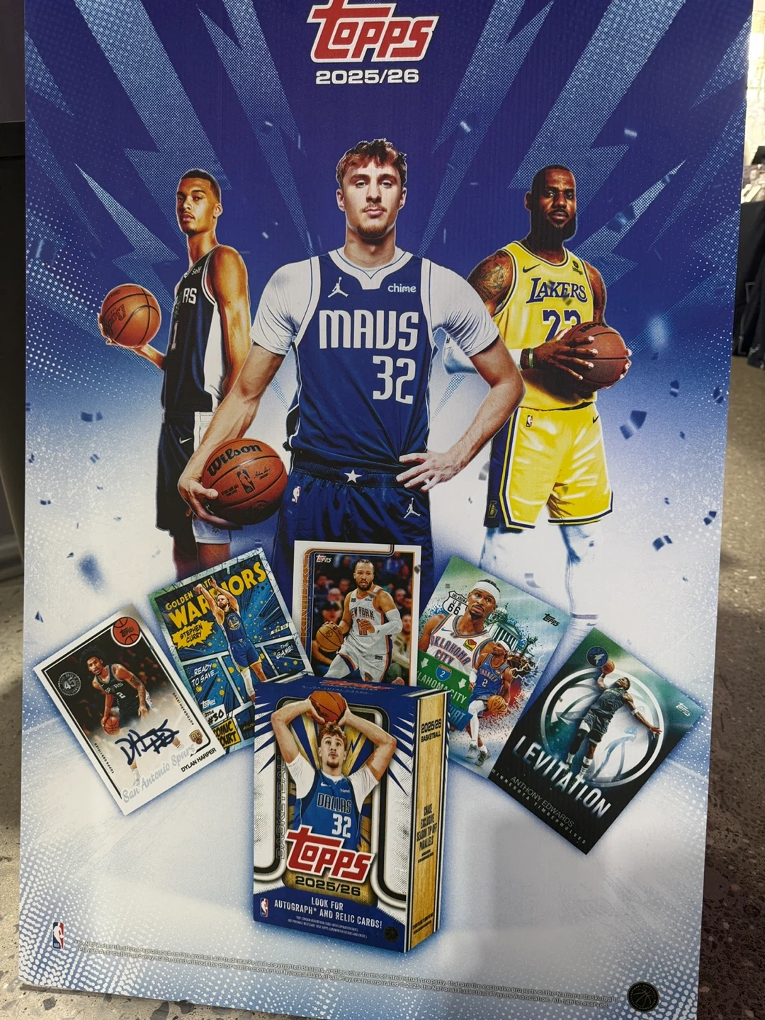334Selling Topps 2025/26 basketball poster board featuring autographs and relic cards! Look for your favorite players! It will look nice in the room of any basketball fan!