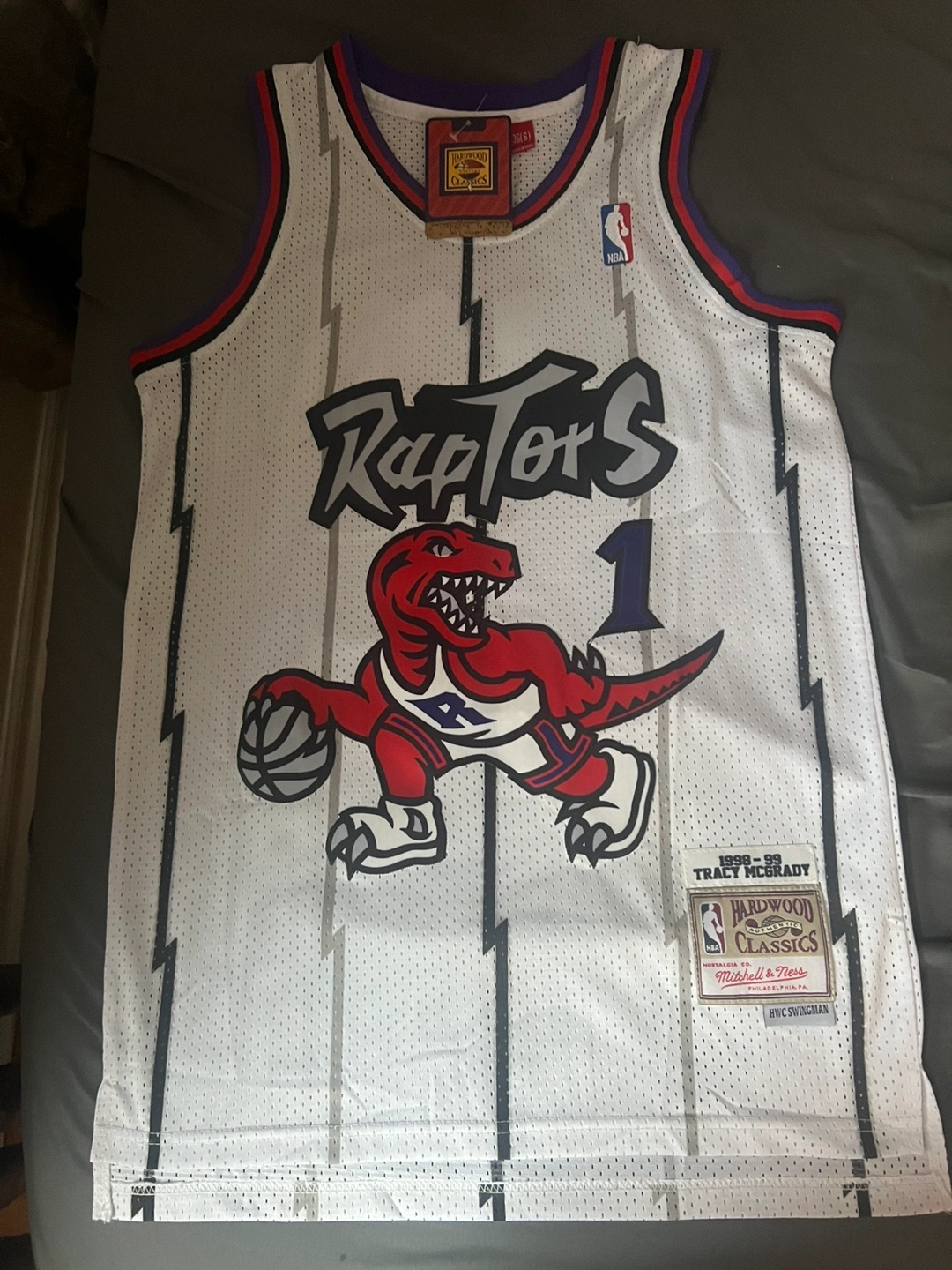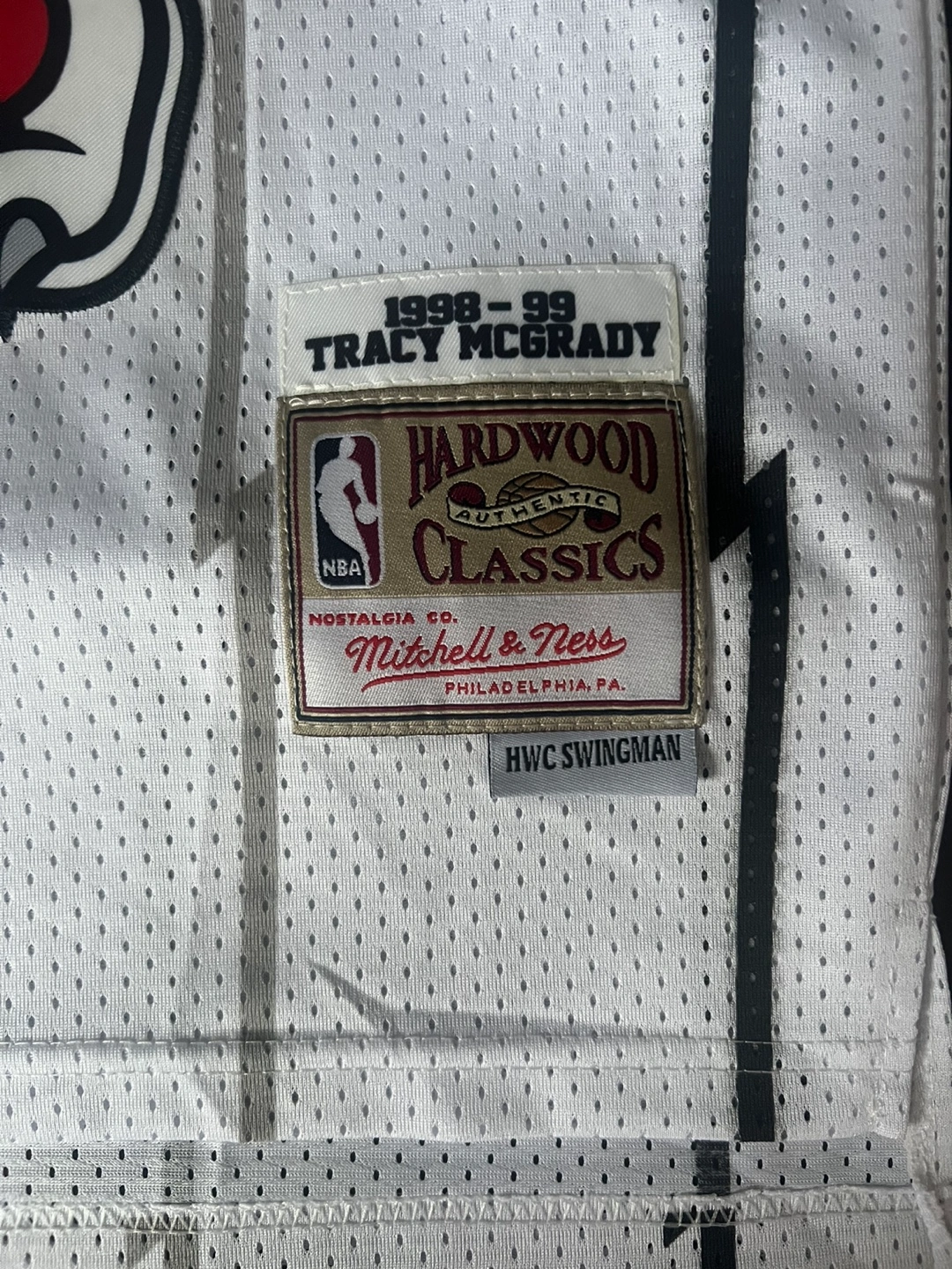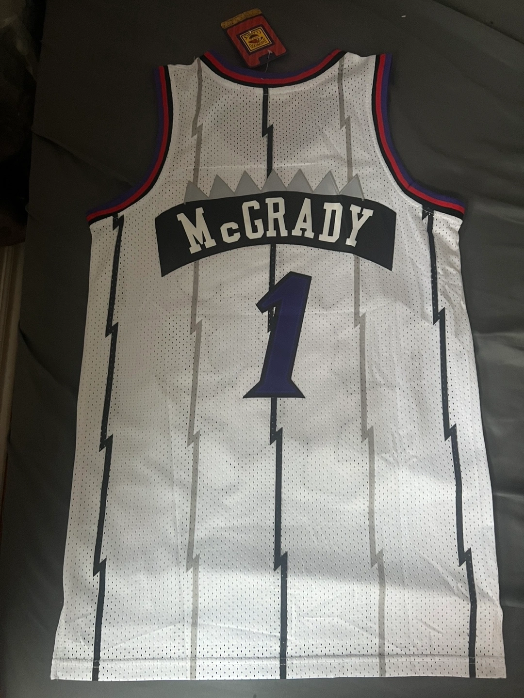 A basketball jersey. White jersey with the number 1 on the front and back. Player name McGrady across the back. Consider this for the next time you watch the game, because it's a great way to show your team spirit.