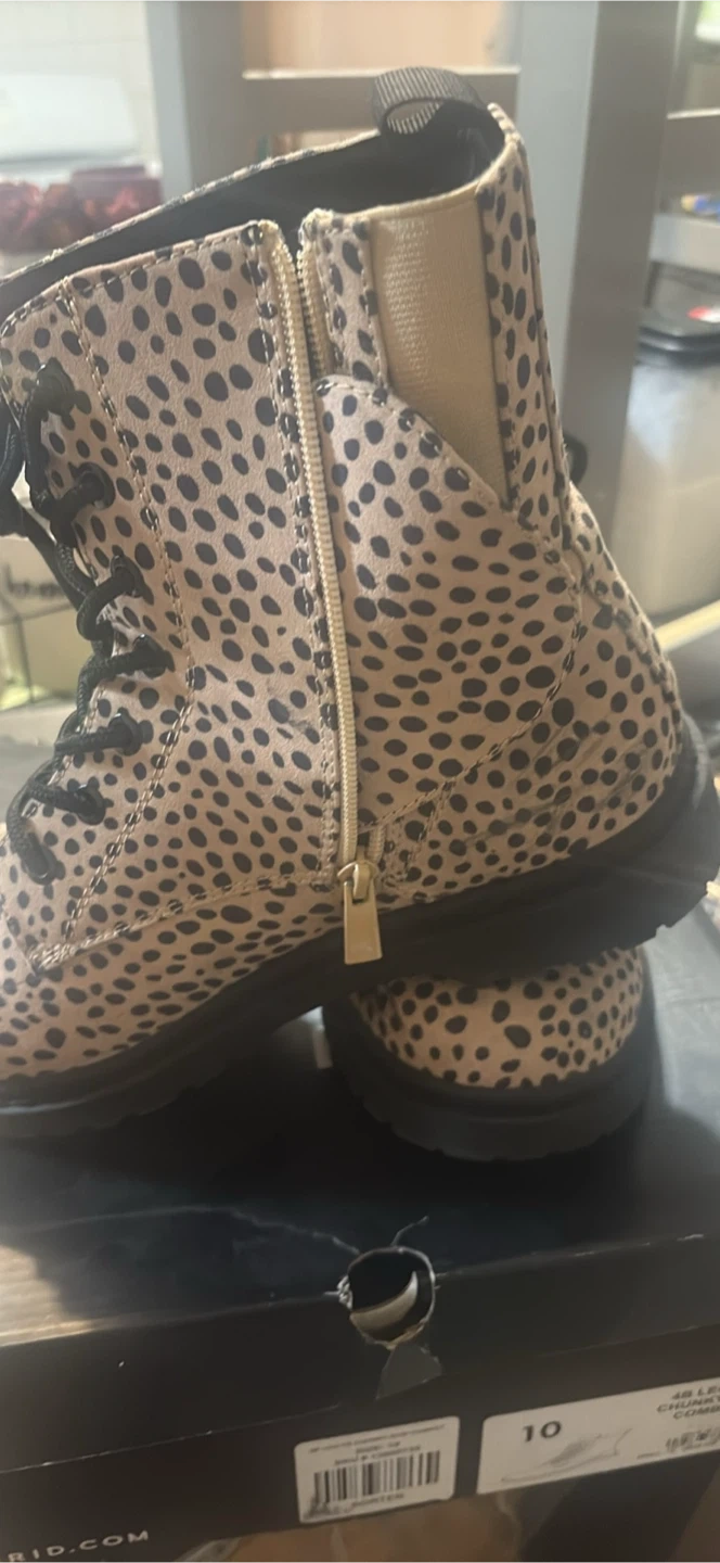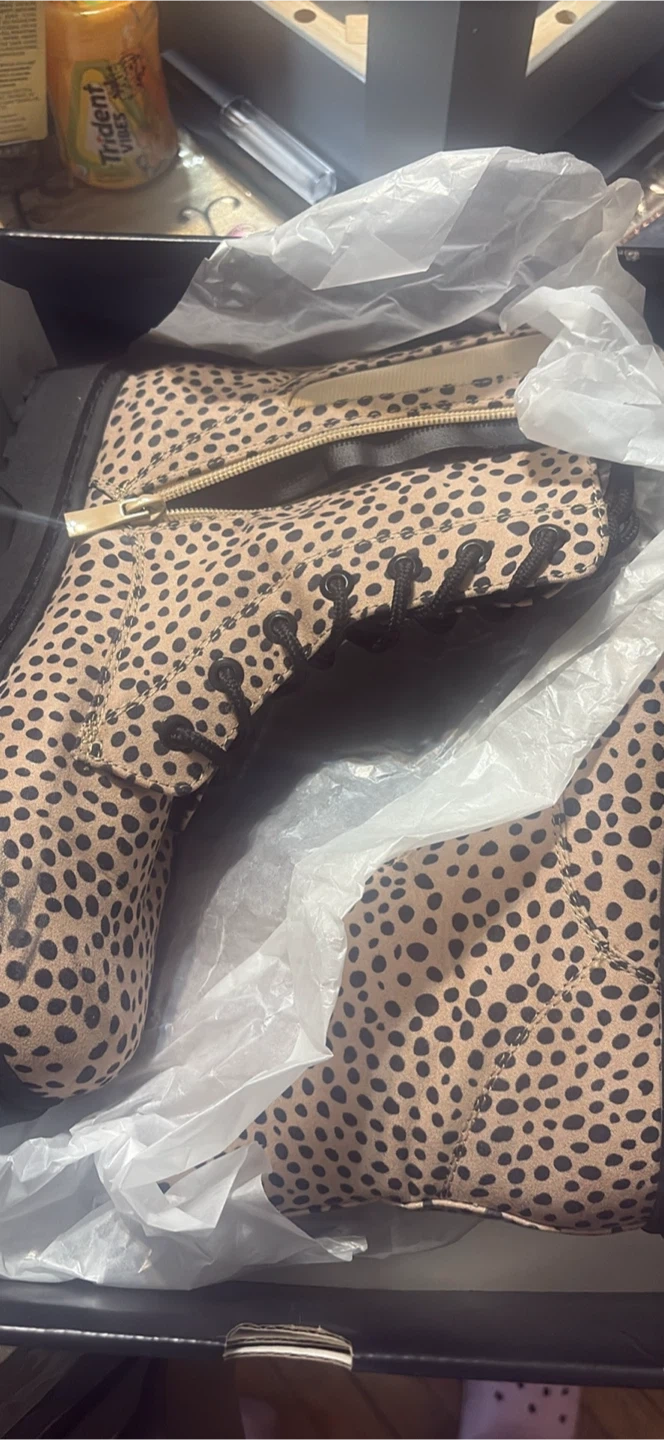 Cute leopard print combat boots from Torrid! They are a size 10 and come in the original box. The original price was $99.50. Used 2x