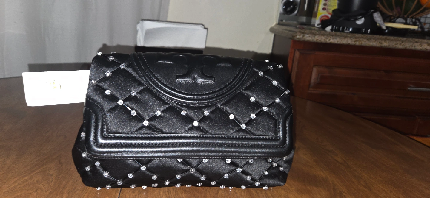 10Selling a beautiful black quilted shoulder bag from Tory Burch! It's in great condition and ready for a new home. The bag features a quilted design with a Tory Burch logo on the front. Perfect for adding a touch of elegance to any outfit