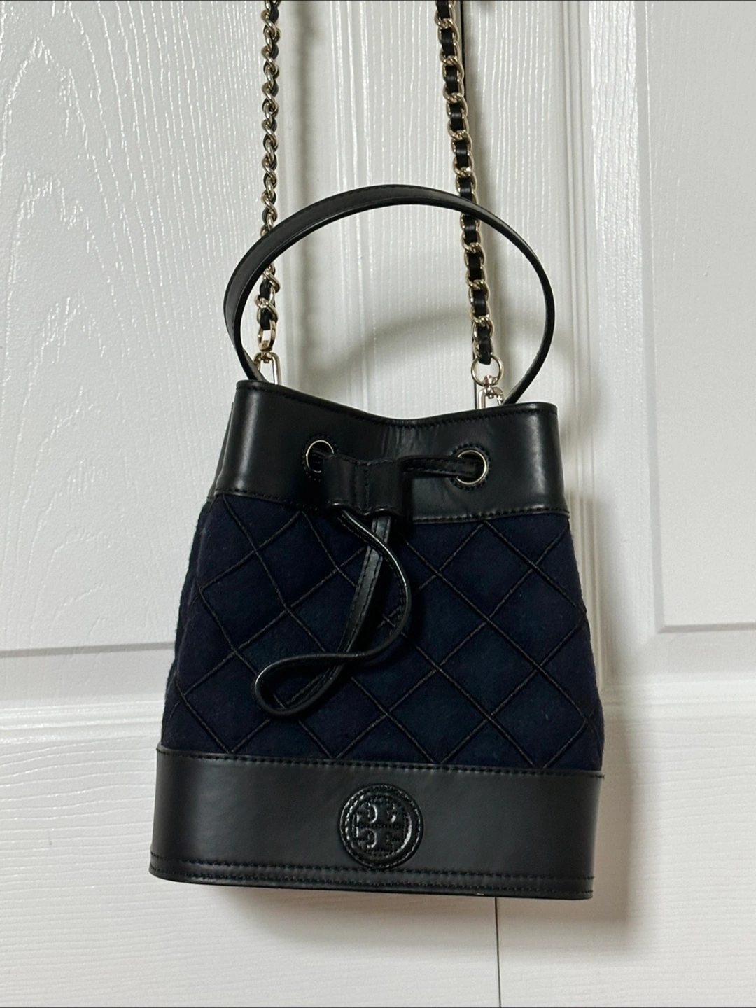 10This Tory Burch mini bucket bag is in great condition, the strap is adjustable and can fit your everyday essentials, a super cute addition to your wardrobe