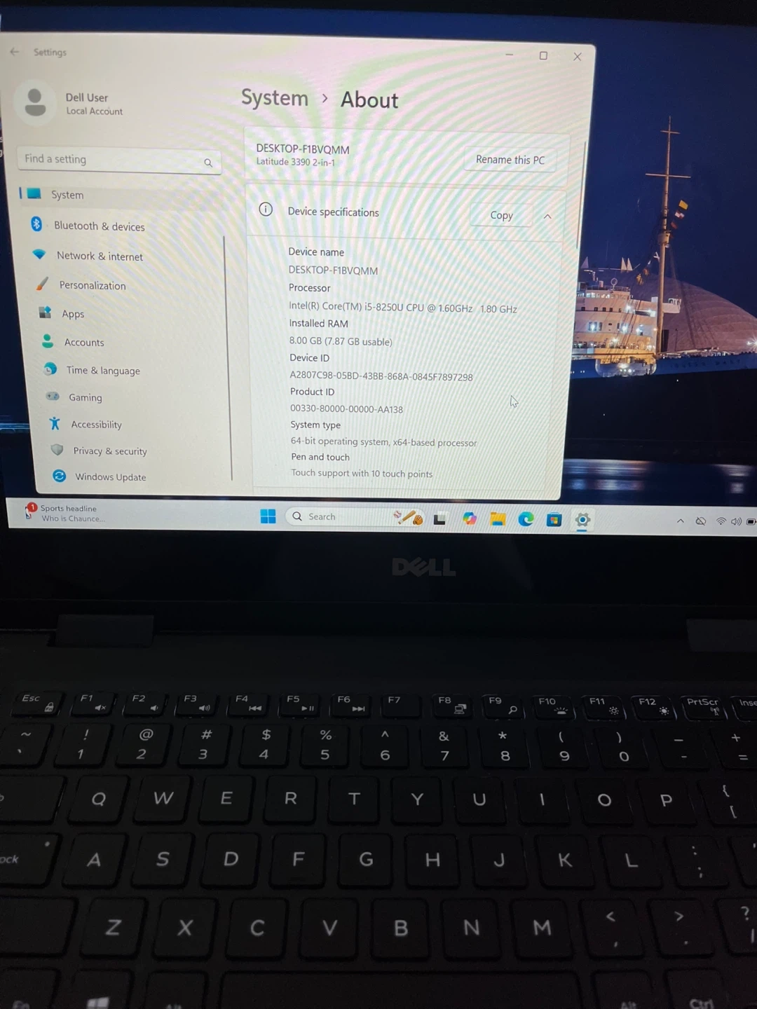 Touchscreen Dell Latitude 3390 i5-8250u 8gb 128gb Windows 11