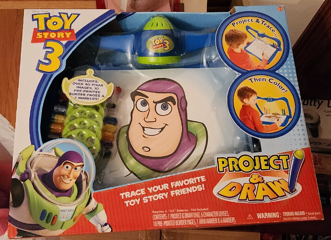 Trace your favorite Toy Story friends with this Project & Draw set! Includes over 40 Pixar images, 10 pre-printed border pages, and 7 markers. It also comes with 1 project & draw unit and 6 character lenses! Requires 4 "AA" batteries (not included).