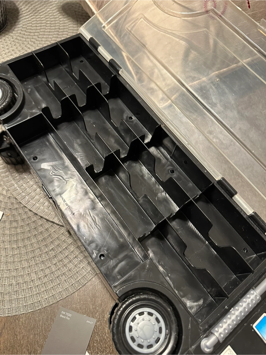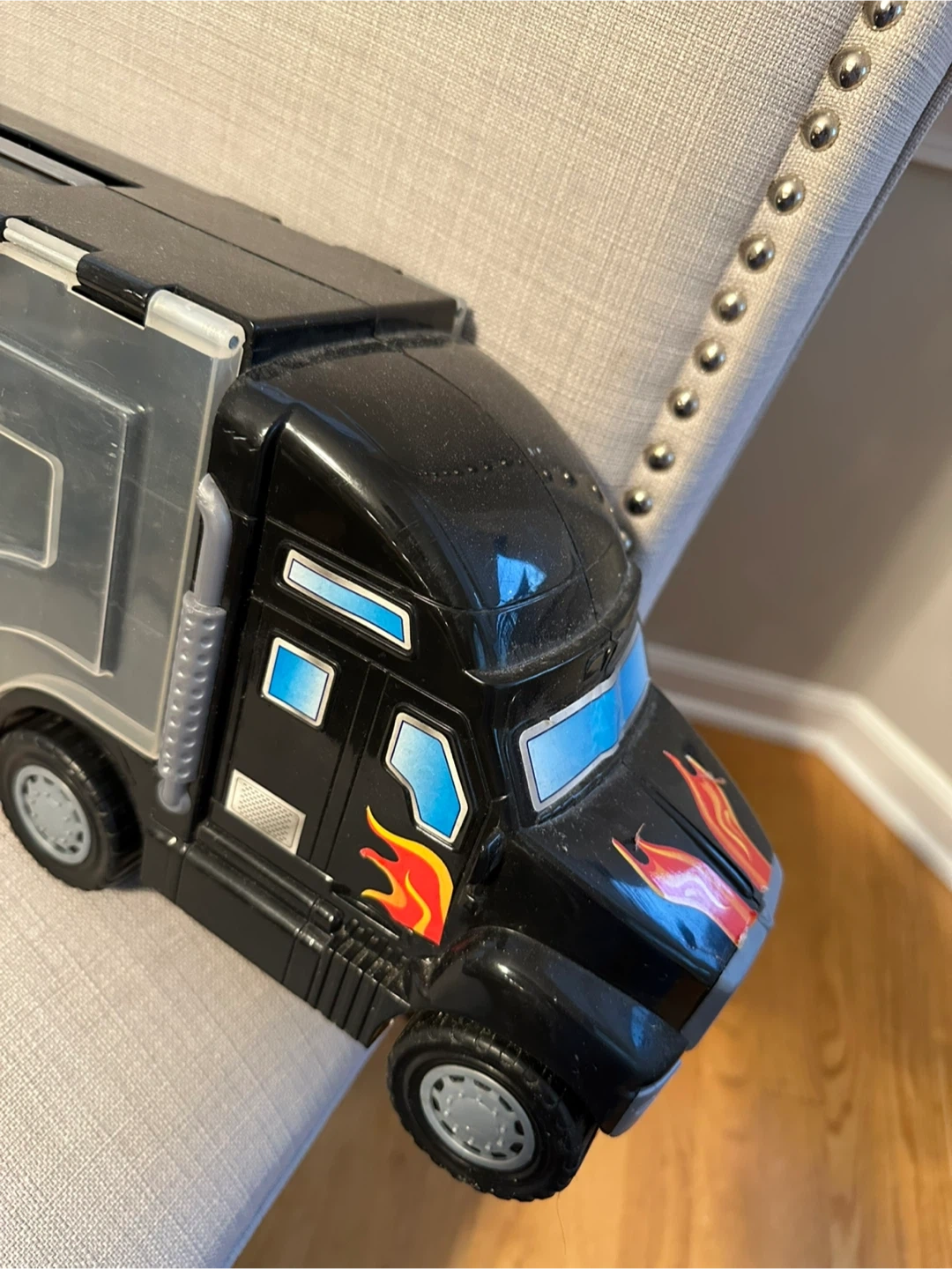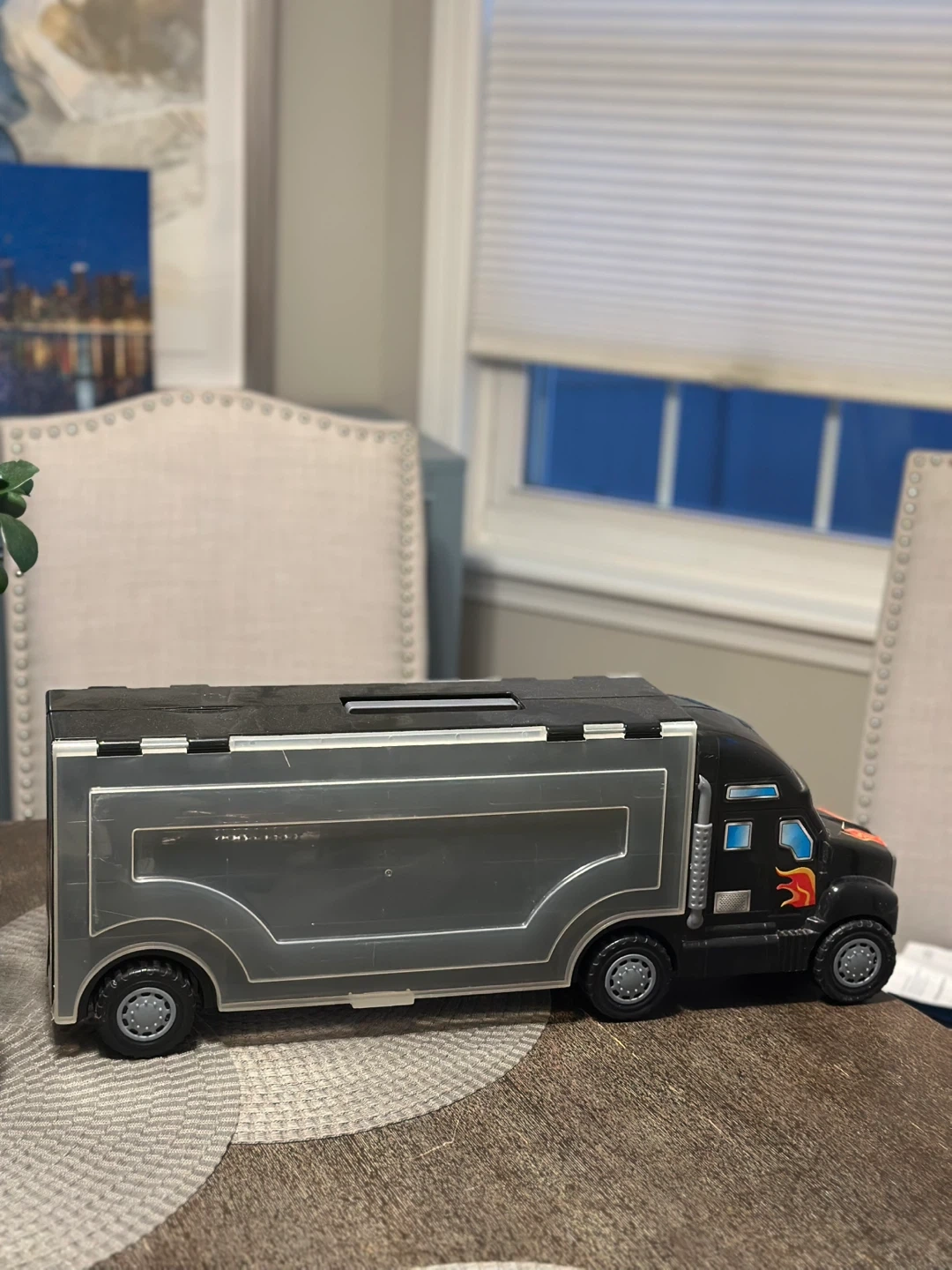 This is a toy truck car carrier. Can carry /store 28 matchbox cars .