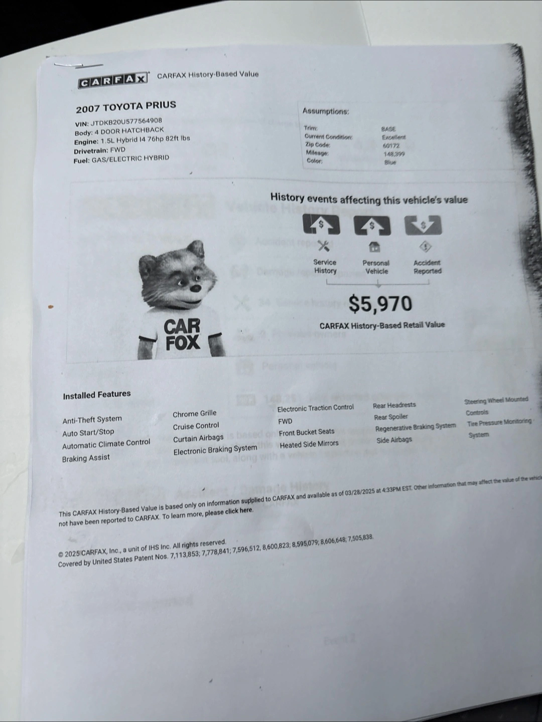 Selling a blue Toyota Prius Hybrid. It is in overall good condition.