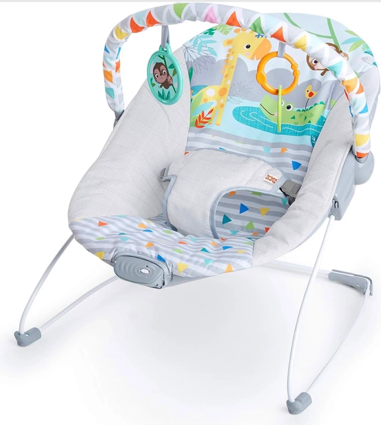 Bright Starts Baby Bouncer Soothing Vibrations Infant Seat - Removable -Toy Bar, Nonslip Feet, 0-6 Months Up to 20 lbs (Safari Fun)