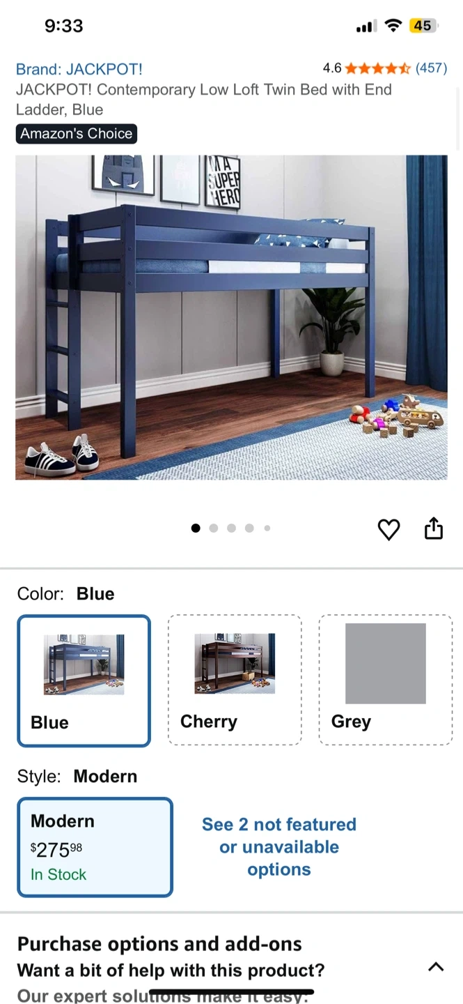 Selling a JACKPOT! Contemporary Low Loft Twin Bed in blue