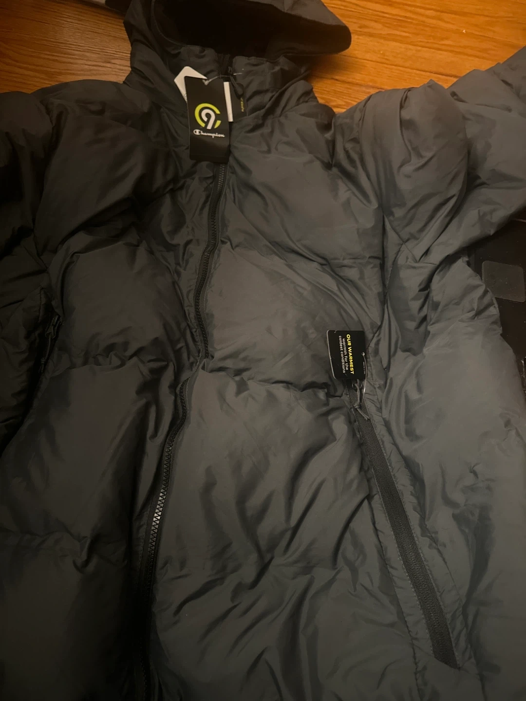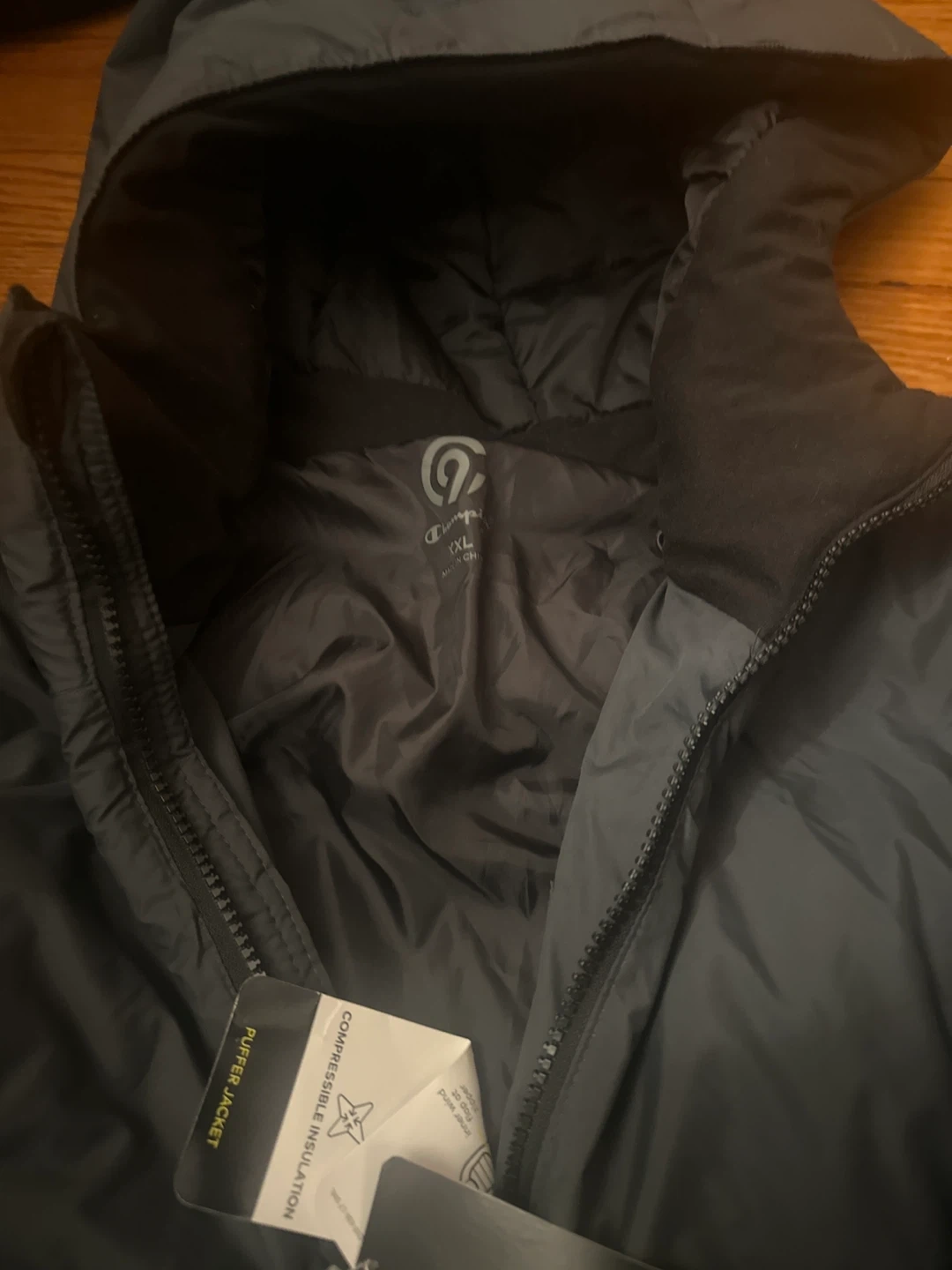 Selling a brand new with tags Champion Packable Puffer Jacket! This jacket is a size XXL and features compressible insulation. It's a stylish and practical choice for staying warm and comfortable!