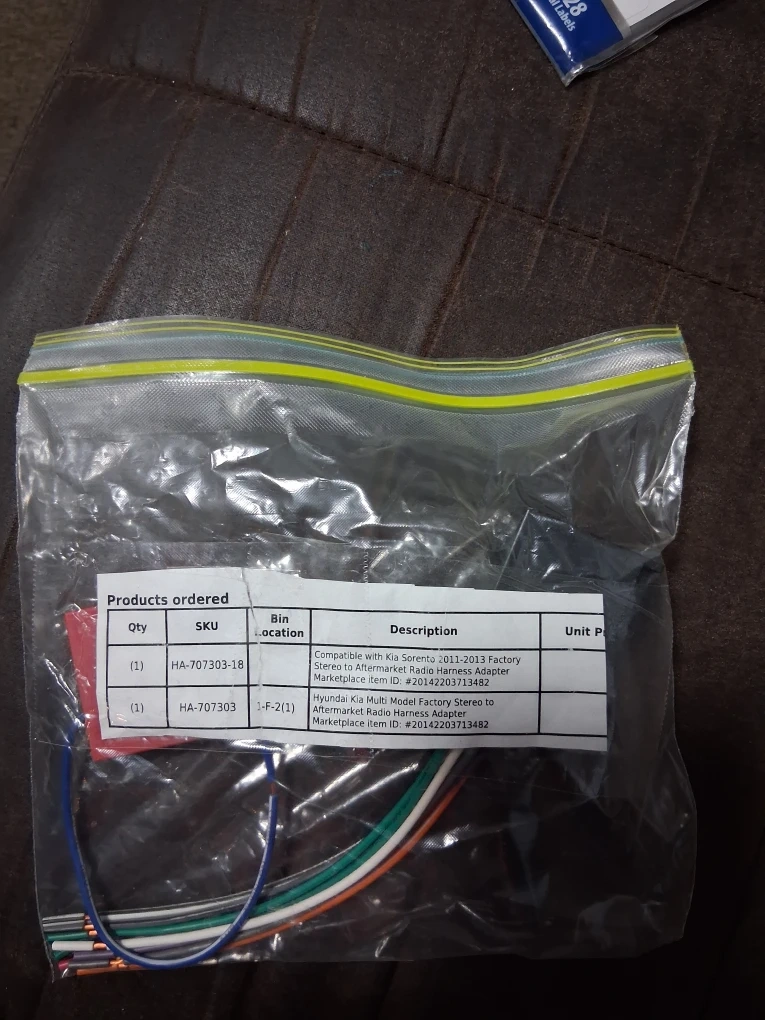 Selling an aftermarket radio harness adapter. Compatible with Kia Sorento 2011-2013 Factory Stereo to Aftermarket Radio Harness Adapter. Also compatible with Hyundai Kia Multi-Model Stereo to Aftermarket Radio Harness Adapter.