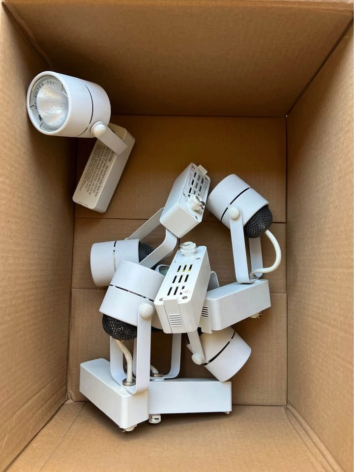 Track lighting no longer needed, total of 6 track heads with bulbs, all included.